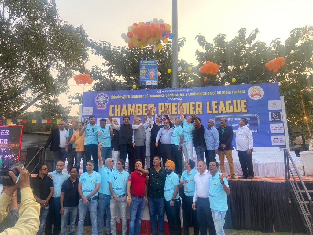 छत्तीसगढ़ चेंबर ऑफ कॉमर्स एंड इंडस्ट्रीज के प्रदेश अध्यक्ष अमर पारवानी, महामंत्री अजय भसीन, कोषाध्यक्ष उत्तम गोलछा, कार्यकारी अध्यक्ष राजेंद्र जग्गी, विक्रम सिंहदेव, राम मंधान, मनमोहन अग्रवाल, कैट सी.जी.चेप्टर के प्रदेश अध्यक्ष जीतेन्द्र दोशी, महामंत्री सुरिन्दर सिंह, कोषाध्यक्ष अजय अग्रवाल ने बताया कि आज सुभाष स्टेडियम में चेंबर एवं कैट के संयुक्त तत्वाधान में खेले जा रहे ‘‘चेंबर प्रीमियर क्रिकेट लीग ‘‘ का भव्य आगाज आज दिनांक 8 जनवरी 2024 को हुआ जो 20 जनवरी 2024 तक चलेगा।
