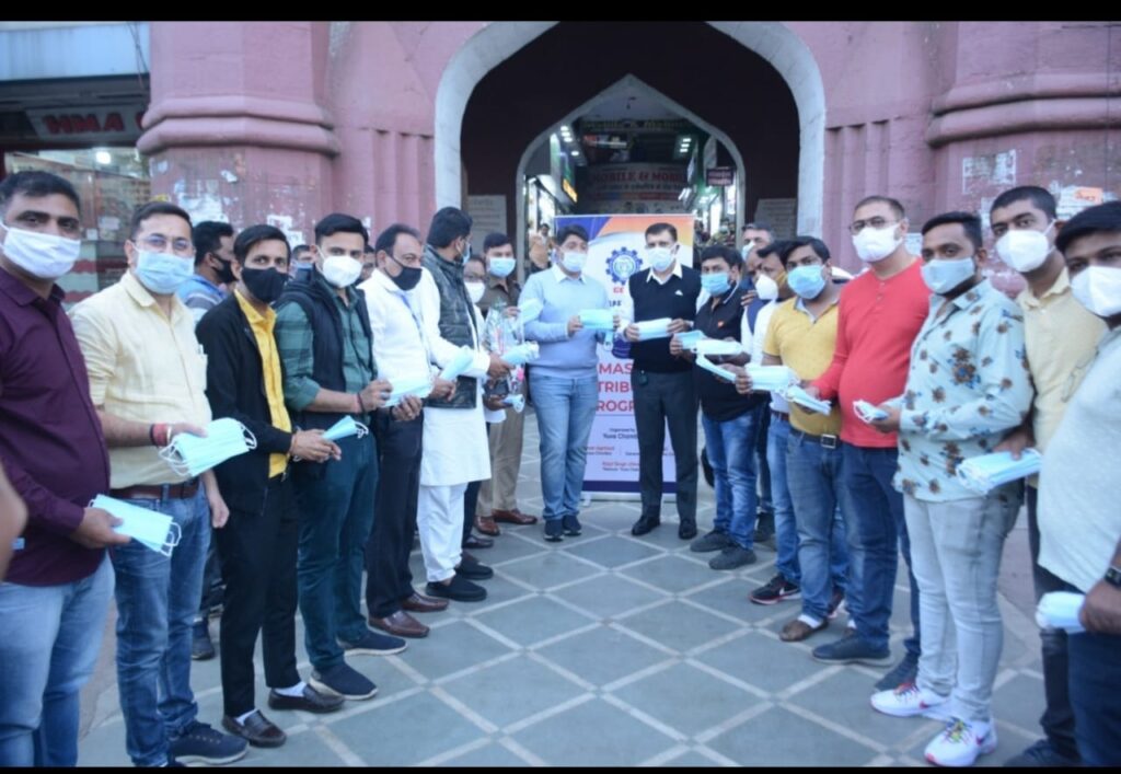 छत्तीसगढ़ चेम्बर आॅफ कामर्स एंड इंडस्ट्रीज-युवा चेम्बर द्वारा जय स्तंभ चैक रविभवन में मास्क वितरण कर जन जागरण अभियान का शुभारंभ किया गया