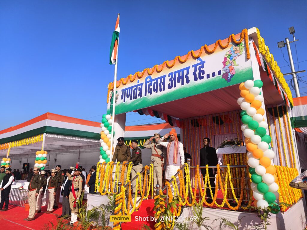 रायपुर,26 जनवरी 2024/ लोक स्वास्थ्य और परिवार कल्याण, चिकित्सा शिक्षा, बीस सूत्रीय कार्यान्वयन मंत्री छत्तीसगढ़ शासन श्री श्याम बिहारी जायसवाल ने मनेंद्रगढ़ भरतपुर चिरमिरी जिला के आमाखेरवा स्टेडियम ग्राउंड मनेद्रगढ़ में गणतंत्र दिवस के अवसर पर ध्वजारोहण किया। आयोजित जिला स्तरीय कार्यक्रम में ध्वजारोहण कर परेड की सलामी ली। उन्होंने माननीय मुख्यमंत्री के द्वारा आमनागरिको के नाम संदेश का वाचन भी किया।