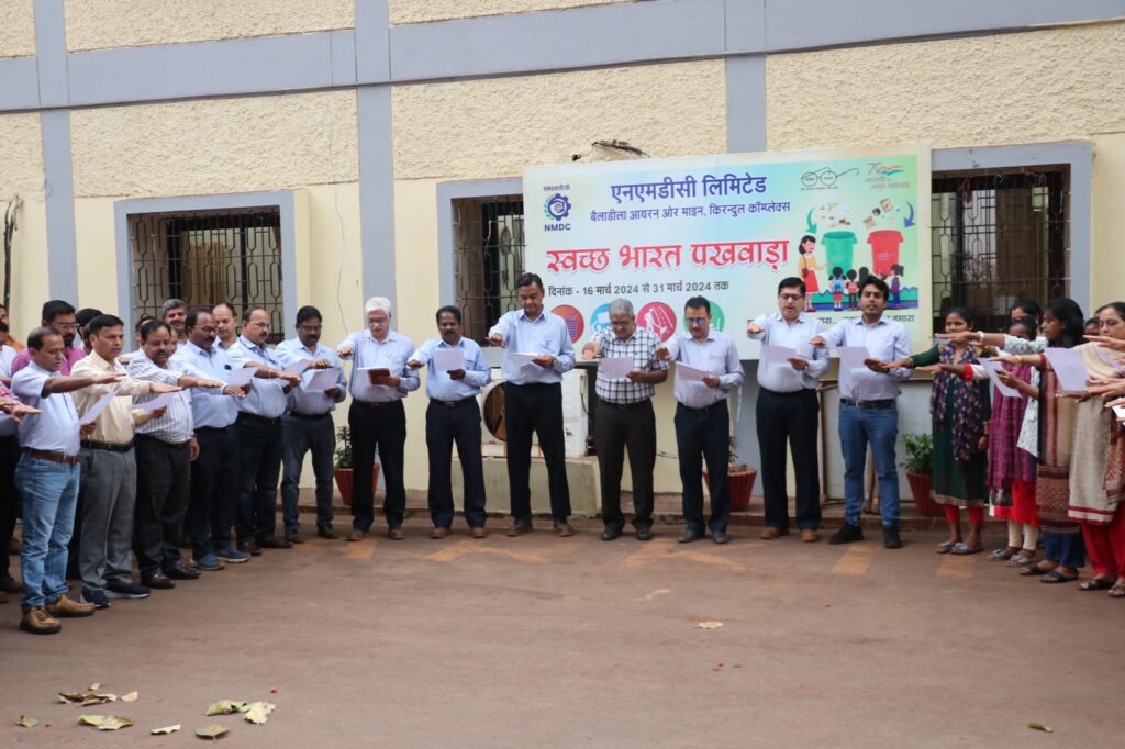 एस एच अज़हर किरंदुल-किरन्दुल एनएमडीसी मुख्य महाप्रबंधक पद्मनाभ नाईक के निर्देशन एवं उप महाप्रबंधक (कार्मिक) बी.के. माधव के मार्गदर्शन में 16 मार्च से 31 मार्च तक किरन्दुल परियोजना में स्वच्छ भारत पखवाड़ा मनाया जा रहा हैं।जिसके तहत आज शनिवार को एनएमडीसी परियोजना में मुख्य महाप्रबंधक ने सभी अधिकारियों एवं कर्मचारियों को स्वच्छता की शपथ दिलाई साथ ही एडमिन बिल्डिंग परिसर की साफ सफाई की गई। मौके पर आर.राजाकुमार, महाप्रबंधक (उत्पादन) , सुब्रमण्यम, महाप्रबंधक (विद्युत), श्रवण कुमार, महाप्रबंधक (भू विज्ञान ), एसके कोचर, महाप्रबंधक (खनन) एवं समस्त विभागाध्यक्ष, कर्मचारीगण उपस्थित थे।