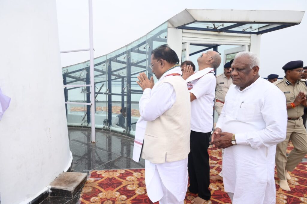 रायपुर,16 मार्च 2024/मुख्यमंत्री विष्णु देव साय आज बाबा गुरु घासीदास की जन्मभूमि एवं तपोभूमि गिरौदपुरी धाम में आयोजित गुरुदर्शन मेला में शामिल हुए। उन्होंने गुरु गद्दी एवं जैतखाम की पूजा- अर्चना कर नमन किया और छत्तीसगढ़ वासियों की खुशहाली और तरक्की के लिए कामना की। मुख्यमंत्री ने इस अवसर पर कुतुबमीनार से ऊंचे जैतखाम में पहुंचकर पूजा की साथ ही ऊपर से दूरबीन की सहायता से प्रकृति के नजारे का आनंद लिया। इस अवसर पर भंडारपुरीधाम गुरु गद्दीनशीन श्री बालदास भी उपस्थित रहे।तीन दिवसीय गिरौदपुरी मेले का आज अंतिम दिन है। यह मेला 14 मार्च से प्रारंभ हुआ था।