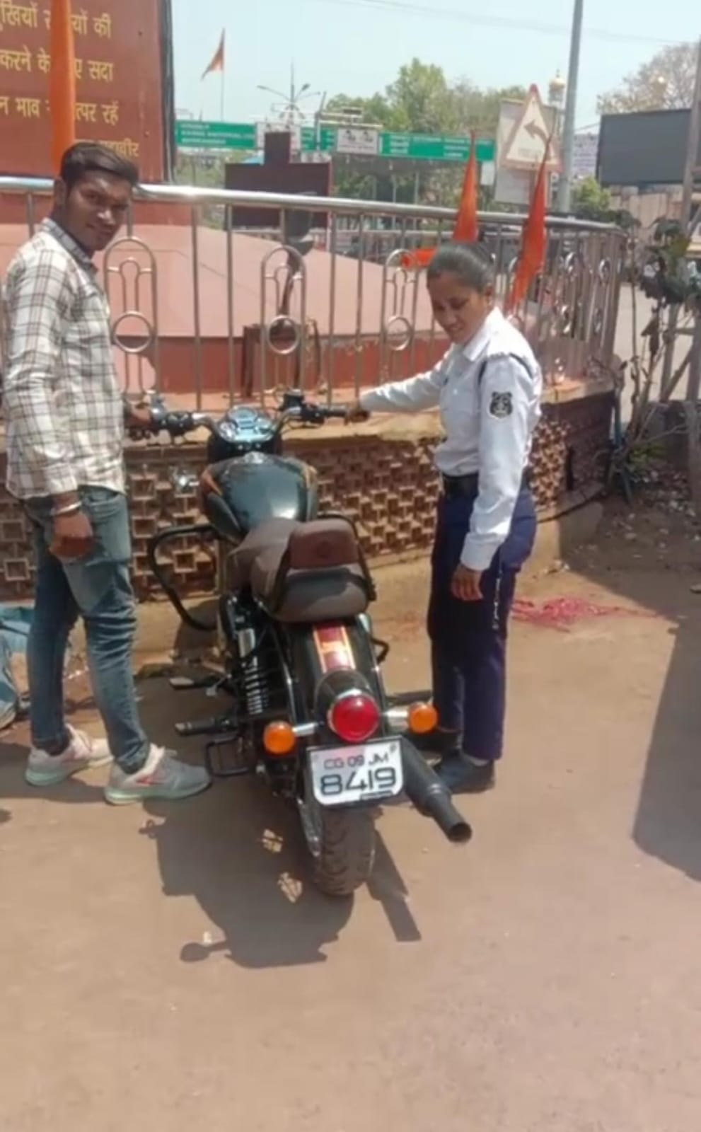 कवर्धा। कबीरधाम जिले में सड़क दुर्घटनाओं में कमी लाने के लिए यातायात पुलिस द्वारा लगातार यातायात जागरूकता अभियान चलाया जा रहा है। कबीरधाम पुलिस अधीक्षक डॉ. अभिषेक पल्लव, अतिरिक्त पुलिस अधीक्षक विकास कुमार, पुष्पेंद्र बघेल के निर्देश पर यातायात प्रभारी प्रवीण खलखो के मार्गदर्शन मे सिग्नल चौक पर विशेष अभियान चलाकार मॉडिफाई साइलेंसर का उपयोग कर साइलेंसर द्वारा पटाखे फोड़ने एवं तेज रफ्तार से बुलेट वाहन चलाने वाले चालकों पर चलानी कार्यवाही किया गया और मोर्डिफाइड साइलेंसर को निकलवाकर कंपनी द्वारा लगाए गए साइलेंसर का ही उपयोग करने समझाईश दिया गया.