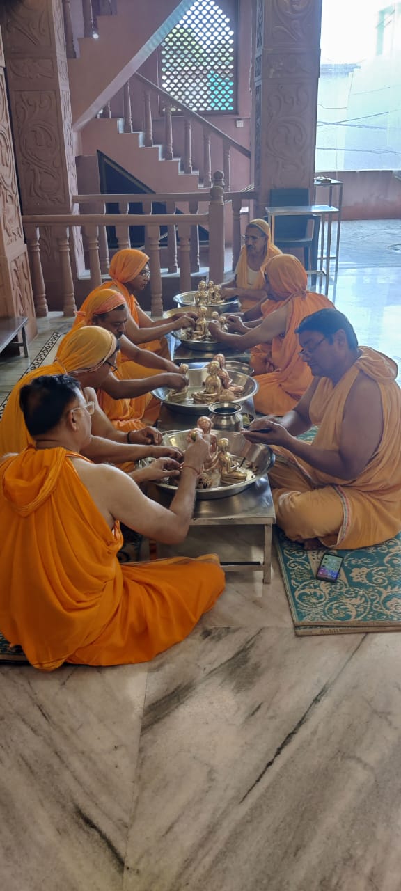 राजधानी रायपुर के डी. डी. नगर स्थित श्री वासुपुज्य दिगंबर जैन मंदिर में आज 31/03/2024 रविवार को मंदिर जी में विराजमान जिन प्रतीमाओ का मज्जन किया गया मंदिर के अध्यक्ष यशवंत जैन ने बताया की आज सुबह 7.30 बजे श्री जी अभिषेक शांतिधारा आरती पूजन पश्चात प्रसुक जल से सभी प्रतिमाओं का मज्जन करवाया गया जैन संप्रदाय में मज्जन का अर्थ परिमार्जन से है अर्थात स्वच्छ या शीतल करने के लिए सारा शरीर प्रसूक जल से धोने के कार्य को मज्जन कहा जाता है विदित हो की परम पूज्य आचार्य श्री विद्यासागर जी महाराज के आशीर्वाद से सभी प्रतिमाओं का पंचकल्याणक अमरकंटक में हुआ था तत्पश्चात सभी प्रतिमाओं को लेकर यहा विराजमान किया गया था राजधानी रायपुर में पहली बार राजस्थान के लाल पत्थरो से निर्मित किया गया है यह मंदिर का निर्माण राजस्थान के कारीगरों द्वारा करोना काल में दिन रात कड़ी मेहनत कर 2 वर्षो मे निर्मित किया गया है यहाँ मुलनायक वासुपूज्य भगवान की 2 टन वजनी प्रतिमा एवं 400 किलो वजनी अष्ट धातु सें निर्मित 2 प्रतिमा विराजमान है एवम अन्य छोटी प्रतिमाएं अष्ट धातु से निर्मित है तथा भूतल से मंदिर के शिखर की ऊंचाई 51 फुट है आज के इस आयोजन में विशेष रूप से यशवंत जैन,पवन सेठी,प्रवीण संघी,निलेश जैन,आशीष जैन,अभिषेक जैन,डॉ विशाल जैन,बाहुबली जैन,महेंद्र जैन,अशोक जेन