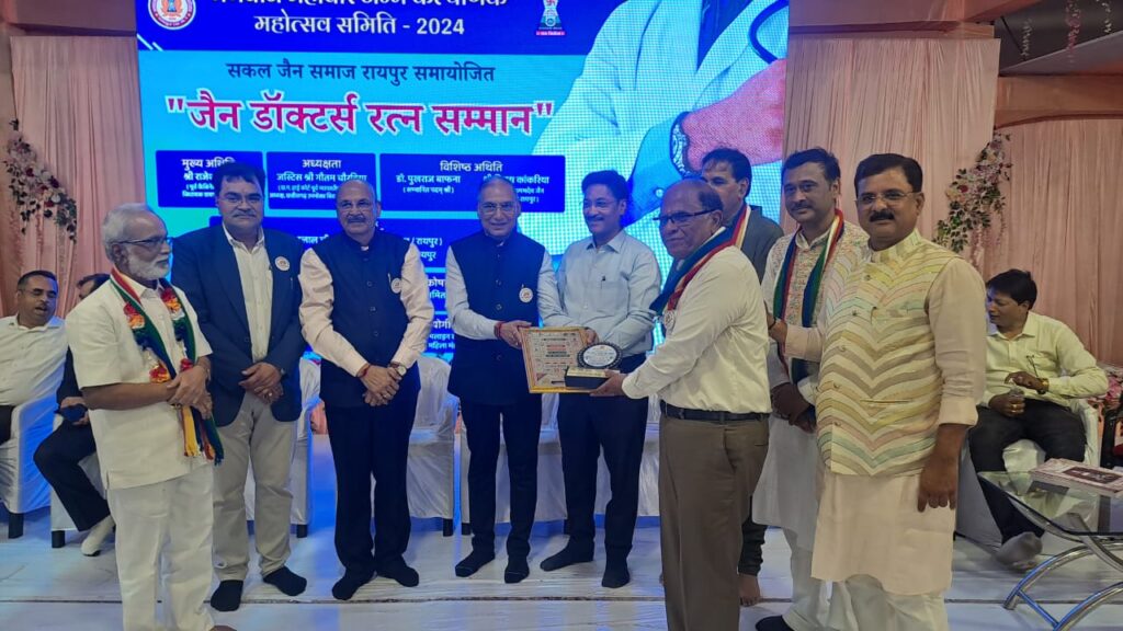जैन समुदाय भारतीय समाज में सर्वाथा महत्वपूर्ण भूमिका निभाते आ रहा है, नैतिकता, अहिंसा, संयम और सेवा के मूल्यों को प्रोत्साहित करता है। और समाज को एक सामूहिक सोच और समरसता की दिशा में प्रेरित करता है। 2024 के 14 अप्रैल को रात 7 बजे, दादाबाड़ी तीर्थ, रायपुर में “जैन डॉक्टर्स रत्न सम्मान 2024” का आयोजन किया गया। इस समारोह में छत्तीसगढ़ हाई कोर्ट के पूर्व न्यायाधीश श्री गौतम चौराडिया, पद्मश्री डॉ पुखराज बफना और विधायक व पूर्व कैबिनेट मंत्री श्री राजेश मूणत के कर कमलों से डॉक्टर्स का सम्मान किया गया। इस सम्मान समारोह का आयोजन श्री महावीर जन्म कल्याणक महोत्सव समिति द्वारा किया जा रहा है, जिसे एनजीओ प्रकाशचंद तारादेवी सिंगी फाउंडेशन और बोथरा परिवार का समर्थन व समन्वय प्राप्त हुआ है। इस कार्यक्रम के संयोजन एवं मार्गदर्शक राजेंद्र पारख,तरुण कोचर,लोकेश चंद्रकांत जैन थे