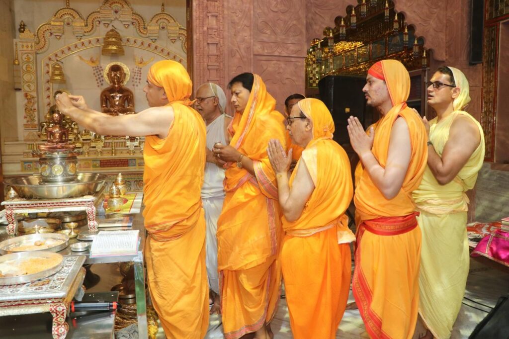 श्री वासुपूज्य दिगंबर जैन मंदिर डी .डी.नगर में आज दिनांक 16 जून रविवार को सुबह 8 बजे श्री वासुपुज्य विधान का आयोजन किया गया। मंदिर समिति के अध्यक्ष नरेश सिंघई ने बताया की आचार्य श्री के आशीर्वाद से डी डी नगर में संत भवन बनवाने हेतु स्थल का मार्ग प्रशस्त हो जाने के उपलक्ष्य में, आदरणीय ब्रह्मचारी अरुण भैया जी व ब्रह्मचारीअंकित भैया जी के कुशल निर्देशन में श्री वासुपूज्य विधान का आयोजन किया गया था। जिसमे सर्वप्रथम आज वासुपुज्य भगवान का अभिषेक किया गया प्रथम अभिषेक प्रमुख इन्द्र द्वारा किया गया जिसमे दीपक जैन दर्शील जैन, अभिषेक रैना जैन, आशीष श्रद्धा जैन ने प्रथम अभिषेक किया। आज की शांति धारा करने का सौभाग्य प्रवीण संघी एवं छक्की लाल कस्तूरचंद परिवार को मिला। तत्पश्चात वासुपुज्य विधान आरंभ किया गया आज के विधान में अष्ट द्रव्य से निर्मित कुल 72 अर्घ्य चढ़ाए गए। अंत में ॐ ह्रीं श्रीवासुपूज्य जिनेन्द्राय पूर्णार्घ्यं निर्वपामीति स्वाहा मंत्र उच्चारण से अंतिम अर्घ्य चढ़ा कर विसर्जन किया गया।वासुपुज्य भगवान के जयकारों से पूरा जिनालय गुंजायमान हो गया। विधान का संगीतमय मंच का संचालन राजेश रज्जन जैन द्वारा किया गया। संत भवन निर्माण के लिए अभिषेक मीनाक्षी जैन द्वारा एक स्तंभ लिया गया तथा संजय नायक जैन,अनिल कुमार संजय कुमार जैन मोहबा बाजार आदि ने भी निर्माण हेतु अपनी चंचला लक्ष्मी का उपयोग कर विशेष सहयोग प्रदान किया। आज के वात्सल्य भोज के पुण्यार्जक अनिल कुमार संजय कुमार जैन मोहबा बाजार रहे।आज के इस पुण्यशाली अवसर पर दिगंबर जैन समाज के सभी मंदिरों के प्रमुखों के साथ धर्म प्रेमी बंधु एवं आदिश्वर महिला मंडल, डी डी नगर मंदिर रायपुर के सदस्य विधान में सपरिवार शामिल होकर धर्म लेकर पुण्यार्जन प्राप्त किया।