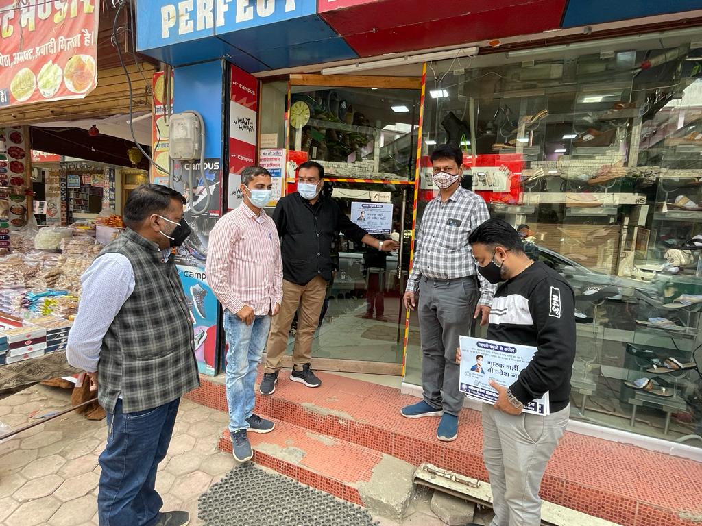 छत्तीसगढ़ चैम्बर आफ कामर्स एण्ड इंडस्ट्रीज, सरगुजा इकाई द्वारा “मास्क नहीं तो प्रवेश नहीं” मुहिम का अगला चरण शंकर ट्रेडर्स, देवीगंज रोड, अम्बिकापुर से आरंभ किया गया। ज्ञात हो कि 15 जनवरी से ही लगातार चैम्बर के सदस्य एवं पदाधिकारी शहर के विभिन्न मार्गों मे जाकर वहाँ के व्यापारियों से मुलाकात कर रहे हैं और उन्हें “मास्क नहीं तो प्रवेश नहीं” की मुहिम से अवगत करा रहे हैं। इसी कड़ी मे आज चैम्बर की सरगुजा इकाई के सम्मानित सदस्य एवं शहर के वरिष्ठ व्यापारी मुकेश अग्रवाल , अध्यक्ष अजीत अग्रवाल उपाध्यक्ष गुलाब चंद धनवानी, कोषाध्यक्ष अमित तिवारी जी एवं मंत्री शिवांशु गुप्ता द्वारा देवीगंज रोड स्थित सभी दुकानों मे जा कर “मास्क नहीं तो प्रवेश नहीं” के स्टीकर लगाए गए एवं व्यापारियों को कोरोना से सम्बंधित समस्त प्रोटोकॉल फालो करने हेतू निवेदन किया गया ताकि सम्पूर्ण जिले को लाकडाउन जैसी विषम परिस्थिति का सामना पुनः करने से बचाया जा सके। चैम्बर के सदस्यों द्वारा लगातार सभी दुकानदारों से उनके परिवार व स्टाफ के वैक्सिनेशन की जानकारी ली जा रही है एवं दुकानों मे मौजूद ग्राहकों को भी कोरोना से बचाव हेतु मास्क लगाने, सैनेटाइजर का लगातार प्रयोग करने और सोशल डिस्टेंस का पालन आवश्यक रूप से करने एवं अन्य लोगों से भी कराने के लिए जागरूक किया जा रहा है। छत्तीसगढ़ चैम्बर आफ कामर्स एंड इंडस्ट्रीज का प्रयास है की प्रदेश के समस्त व्यवसायी सुरक्षित एवं सतर्क रहें ताकि कोरोना महामारी की तीसरी लहर का असर आम जनता पर कम से कम हो।