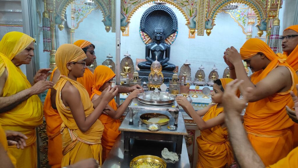 श्री आदिनाथ दिगंबर जैन बड़ा मंदिर मालवीय रोड रायपुर के जिनालय में पार्श्वनाथ बेदी के समक्ष आध्यात्मिक प्रयोगशाला के माध्यम से आज दिनाँक – 7/07/02024 तिथि : आषाढ़ शुक्ल शुक्ल तृतीया,निर्माण संवत २५५० दिन : रविवार को प्राचीन आरंग के चमत्कारिक स्फटिकमणी की प्रतिमाओं का अभिषेक किया गया। बड़ा मंदिर ट्रस्ट कमेटी के पूर्व उपाध्यक्ष श्रेयश जैन बालू ने बताया कि दिगंबर जैनीयों के १४०० बर्ष के प्राचीन स्थान आरंग खंडहरों से जो रायपुर से २२ मील दूर है अष्टधातु के सिंहासनों सहित निकली हुई ये स्फटिकमणी की भब्य प्रतिमाओं को असाद सुदी २ संबत १९५४ को गंगाधर गंधर्व से प्राप्त कर रायपुर दिगम्बर जैन समाज ने बिराजमान किया था। इन चमत्कारिक प्रतिमाओं के दर्शन एवं अभिषेक पूजन से विशेष फल प्राप्त होते है। साथ ही गृहस्थ को आत्मकल्याण के लिये पंच-परमेष्ठी भगवान का अभिषेक शांति धारा स्तुति एवं पूजन प्रतिदिन करना चाहिए।