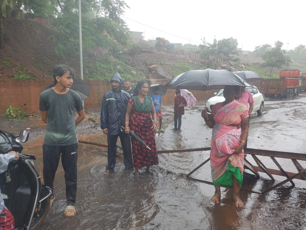 एस एच अजहर दंतेवाड़ा। किरंदुल में आज दूसरे दिन फिर से मुख्य मार्ग पर महिला -पुरुषों ने मुख्य मार्ग पर डट गये। इससे गाड़ियों का आना जाना बंद हो गया। किरंदुल के गाटर पुलिया के समीप निचली बस्ती में भी बांध के डस्ट पानी के बहाव के कारण कई घर तबाह हो गये। घटना के दूसरे दिन अब तक कोई भी प्रशासनिक अमला एनएमडीसी अधिकारी उनकी खबर लेने नहीं पहुंचा जिस वजह से महिलाओं बच्चों व पुरुषों में काफी आक्रोश है