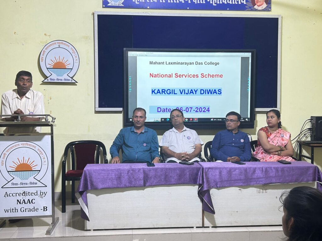 महंत लक्ष्मीनारायण दास महाविद्यालय रायपुर की राष्ट्रीय सेवा योजना इकाई द्वारा कारगिल युद्ध के दौरान हुई ऐतिहासिक विजय की 25वीं वर्षगांठ बनाई गई। प्राचार्य डॉ. देवाशीष मुखर्जी के मार्गदर्शन में कारगिल और सियाचिन की भौगोलिक स्थिति एवं एलओसी और एलओएसी, भारतीय सेना के ऑपरेशन विजय और वायु सेवा के ऑपरेशन सफेद सागर के संबंध में छात्र-छात्राओं को अवगत कराया गया। इस अवसर पर रासेयो स्वयंसेवक अमन पांडेय,ऋषभ,फैज, ग्रेसी, विकास, सेजल और पायल ने कारगिल युद्ध में देश की रक्षा के लिए सेना के योगदान तथा वीर सैनिकों को उनके साहस और सर्वोच्च बलिदान को नमन कर उन पर अपने विचार रखे ।कार्यक्रम में प्राध्यापक डॉ. शांतनु पाल, प्रो.सुधीर जैन, डॉ. राकेश चंद्राकर, डॉ.जया चंद्रा, रासेयो कार्यक्रम अधिकारी डां. लक्ष्मीकांत साहू सहित रासेयो स्वयंसेवक बड़ी संख्या में उपस्थित थे।