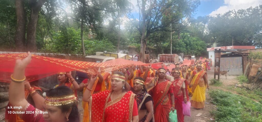 बहुत गर्म था और अधिकतर माताओं-बहनों एवं मातृ-शक्तियों में से अष्टमी व्रत उपवास रखें हुए थे लेकिन आस्था श्रद्धा के सामने माताओं-बहनों में चुनरी यात्रा के लिए उत्साहित वातावरण के माहौल में खाली पैर बगैर चप्पल पहने किरंदुल शहर का भ्रमण करते हुए जगह जगह नगर परिवार ने पुष्प वर्षा कर आशीर्वाद लिए
