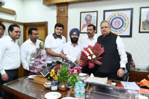 छत्तीसगढ़ चेम्बर ऑफ कॉमर्स एंड इंडस्ट्रीज के प्रदेश अध्यक्ष अमर पारवानी, महामंत्री अजय भसीन, कोषाध्यक्ष उत्तमचंद गोलछा, कार्यकारी अध्यक्ष राजेंद्र जग्गी, विक्रम सिंहदेव,राम मंधान, मनमोहन अग्रवाल एवं कैट सी.जी.चेप्टर के प्रदेश अध्यक्ष जितेन्द्र दोशी, महामंत्री सुरिन्दर सिंह, कोषाध्यक्ष अजय अग्रवाल ने बताया कि माननीय डाॅ. रमन सिंह जी, पूर्व मुख्यमंत्री एवं अध्यक्ष छत्तीसगढ़ विधानसभा के जन्मदिवस के अवसर पर छत्तीसगढ़ चेम्बर एवं कैट सी.जी.चेप्टर के प्रतिनिधि मंडल ने संयुक्त रूप से मुलाकात कर उन्हें पुष्पगुच्छ भेंटकर बधाई एवं शुभकामनाएं देते हुए उनके दीर्घायु की कामना की।