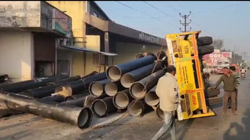 अंबिकापुर। अंबिकापुर के रिंग रोड भाथुपारा में सरगुजा सांसद चिंतामणि महाराज के घर के ठीक सामने जीआइ पाइप लोड ट्रेलर दुर्घटनाग्रस्त हो गया। घटना के समय घर में सुरक्षाकर्मी तैनात थे। लोहे की वजनी पाइपें लुढक कर सांसद निवास के घर के गेट तक पहुंच गई। सांसद चिंतामणि इन दिनों दिल्ली प्रवास पर हैं। देर रात हुई घटना के बाद मौके पर अफरातफरी का माहौल निर्मित हो गया था। ट्रेलर चालक से पूछताछ की जा रही है। कैबिनेट मंत्री रामविचार नेताम के सड़क दुर्घटना में घायल होने के बाद राजपुर के समीप महिला बाल विकास मंत्री लक्ष्मी राजवाड़े सड़क दुर्घटना में बाल-बाल बच गई थी। उनकी वाहन, काफिले की अन्य वाहनों से टकरा कर क्षतिग्रस्त हो गई थी। इन घटनाओं के बाद सोमवार की रात सरगुजा सांसद चिंतामणि महाराज के अंबिकापुर स्थित निवास के ठीक सामने ट्रेलर दुर्घटनाग्रस्त हो गया। हालांकि किसी को गंभीर चोटें नहीं आई लेकिन जिस तरीके से घटना हुई वह सतर्क करने वाली है। यदि सांसद के घर के सामने कोई खड़ा रहता तो बड़ा हादसा हो सकता था।
