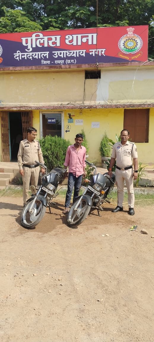इसी दौरान टीम के सदस्यों को आरोपी की रायपुर में उपस्थिति के संबंध में महत्वपूर्ण जानकारी प्राप्त हुई, जिस पर आरोपी की पतासाजी कर उसे पकड़ा गया। चोरी की अन्य घटनाओं के संबंध में कड़ाई से पूछताछ करने पर आरोपी द्वारा थाना डी.डी.नगर क्षेत्र के अलग-अलग स्थानों से 02 नग दोपहिया वाहन चोरी करना बताया गया। चोरी की दोनों दोपहिया वाहन में आरोपी के विरूद्ध थाना डी.डी.नगर में अपराध क्रमांक 21/25 धारा 303(2) बी.एन.एस. तथा धारा 303(2) बी.एन.एस. का अपराध पंजीबद्ध है।