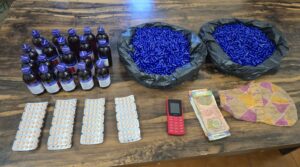 पुलिस ने बताया कि मुखबीर सूचना मिली कि काली मण्डल निवासी पुराना मार्केट बचेली में अवैध मादक पदार्थ नशीली सिरफ, टेबलेट व कैप्सूल छूपा कर रखी हुई है और बिक्री कर रही है की सूचना तस्दीक पर वरिष्ठ अधिकारियो को अवगत कराया गया जो पुलिस अधीक्षक गौरव राय जिला दंतेवाड़ा के दिशा-निर्देशानुसार, एवं पु. अनु. अधि. कपिल चन्द्रा के मार्गदर्शन में अवैध नशीली मादक पदार्थ को बरामद कर तत्काल कार्यवाही कर गिरफतार करने दिशा निर्देश प्राप्त होने पर मुखबीर द्वारा बताये स्थान पुराना मार्केट बचेली काली मंडल के घर के पास पहुंचकर घेराबंदी किया गया जहां आरोपिया काली मंडल मिली जिसे पूछताछ करने व तलाशी लेने पर घर में बने मुर्गा पालने वाला गोड़ा से मादक पदार्थ टेबलेट, कैप्सूल, सिरप को बरामद कर आरोपिया के कब्जे से ब्रिकी की गई 3750 रूपये नगद एवं मोबाईल जप्त कर आरोपिया काली मंडल पति घेना मंडल उम्र 50 वर्ष निवासी वार्ड क्रमांक 12 पुराना मार्केट बचेली के विरूद्ध धारा 21(C) स्वापक औषधि मन:प्रभावी पदार्थ अधिनियम के तहत् गिरफतार कर माननीय न्यायालय के समक्ष पेश कर जेल दाखिल किया गया।
