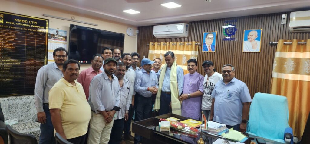 एम सुब्रमण्यम , महाप्रबंधक (उत्पादन )के पद पर कार्यभार ग्रहण करने पर मेटल माईंस वर्कर्स यूनियन इंटक किरंदुल अध्यक्ष विनोद कुमार कश्यप एवं सचिव ए के सिंह के नेतृत्व में यूनियन के पदाधिकारियों एवं सदस्यों के साथ सौजन्य मुलाकात कर पुष्प गुच्छ और शाल भेंट कर नवीन पद के लिए बधाई एवं शुभकामनाएं दिए गये ।