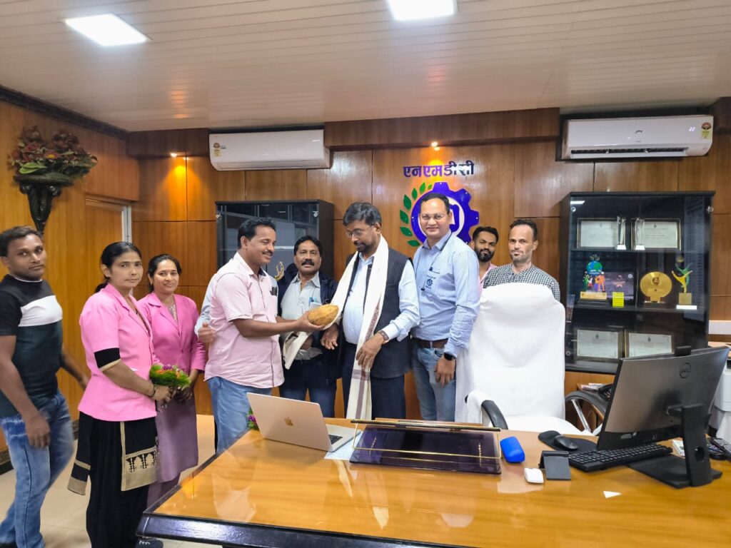 एस एच अज़हर दंतेवाड़ा किरंदुल. विश्व की सबसे बड़ी ट्रेड यूनियन भारतीय मजदूर संघ से संबद्ध खदान मजदूर संघ शाखा किरंदुल के पदाधिकारियों एवं सदस्यों द्वारा एनएमडीसी लिमिटेड किरंदुल कॉम्पलेक्स के नए परियोजना प्रमुख के दायित्व पर कार्यभार ग्रहण करने पर अधिशासी निदेशक रवीन्द्र नारायण एवं मुख्य महाप्रबंधक (उत्पादन) के.पी. सिंह का आत्मीय स्वागत अभिनंदन किया गया तथा बधाई एवं शुभकामनायें दी गई। श्रमिक संघ द्वारा भारतीय परम्परानुसार पुष्पमाला, शाल एवं श्रीफल से अभिनंदन किया गया। अध्यक्ष बी. दिल्ली राव, सचिव महेंद्र कुमार के नेतृत्व में राष्ट्रहित, उद्योगहित एवं श्रमिक हित के ध्येय वाक्य के साथ सदैव ही तत्पर रहने वाली श्रमिक संघ द्वारा परियोजना हित में कंधे से कंधा मिलाकर कार्य करने की बातें कही गई तथा नवीन दायित्व निर्वहन एवं कम्पनी के उत्तरोत्तर प्रगति हेतु शुभकामनायें दी गई तथा परस्पर सहयोग एवं सामंजस्य से नित नवीन कीर्तिमान स्थापित करने हेतु सदैव ही अग्रणी रहने संबंधी विचारों की अभिव्यक्ति की गई। इस अवसर पर यूनियन के पदाधिकारी राजेंद्र यादव, दानेश्वर जोशी, लिशांष सिँह, बसंत कुमार, सुधा, सूरमा, नितेश उपस्थित थे।
