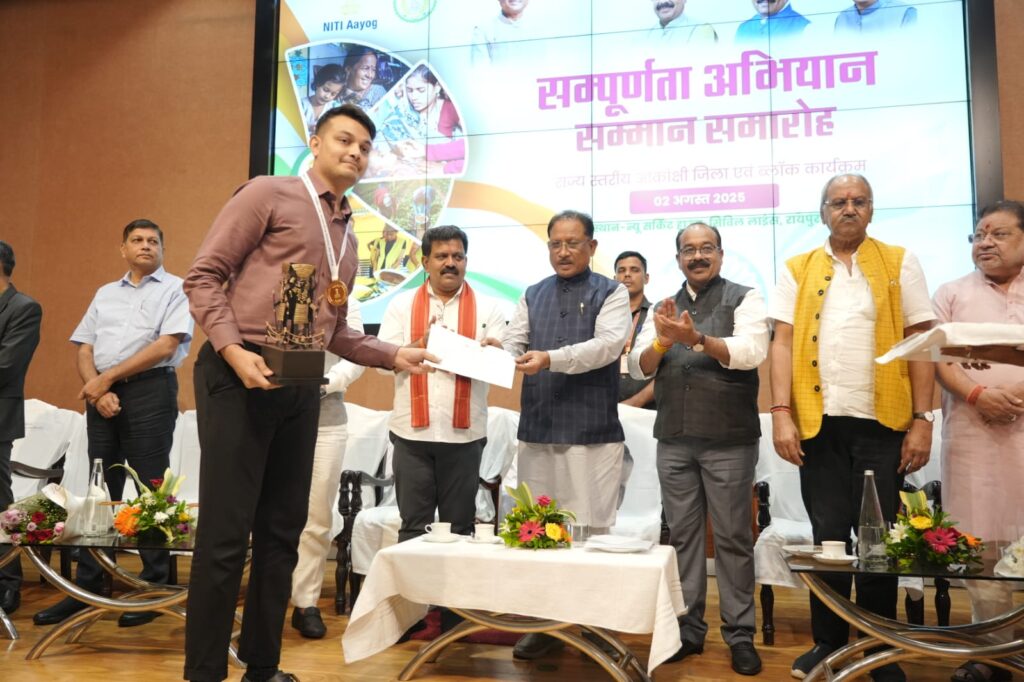 एस एच अज़हर दंतेवाड़ा: राज्य स्तरीय संपूर्णता अभियान सम्मान समारोह में दंतेवाड़ा जिले को विकास और जनकल्याण के क्षेत्र में उत्कृष्ट प्रदर्शन के लिए रजत पदक से सम्मानित किया गया। यह प्रतिष्ठित सम्मान छत्तीसगढ़ के मुख्यमंत्री श्री विष्णुदेव साय ने प्रदान किया, जिसे जिले की ओर से जिला पंचायत के मुख्य कार्यपालन अधिकारी (सीईओ) ने ग्रहण किया। यह उपलब्धि जिले की समर्पित कार्यशैली, प्रशासनिक नवाचार और जनकल्याणकारी योजनाओं के प्रभावी क्रियान्वयन का परिणाम है।
