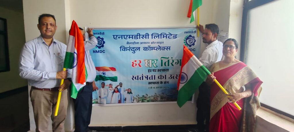 एस एच अज़हर दंतेवाडा किरंदुल, एनएमडीसी की किरंदुल कॉम्प्लेक्स परियोजना द्वारा 2 से 15 अगस्त 2025 तक ‘हर घर तिरंगा, हर घर स्वच्छता’ अभियान के तहत स्वतंत्रता दिवस का उत्सव उत्साहपूर्वक मनाया जाएगा। रवींद्र नारायण, अधिशासी निदेशक के कुशल निर्देशन और के.एल. नागवेणी, उप महाप्रबंधक (मानव संसाधन) के मार्गदर्शन में, परियोजना ने देशभक्ति की भावना जागृत करने और तिरंगे के महत्व को जन-जन तक पहुंचाने के उद्देश्य से आसपास के गांवों में 2000 तिरंगे (डंडे सहित) वितरित किए। ये तिरंगे जिला कलेक्टर, दंतेवाड़ा को परियोजना के सीएसआर कार्यक्रम के तहत सौंपे गए, जो देश की शक्ति, शांति, धर्म, उर्वरता और शुभता के प्रतीक के रूप में लहराएंगे।