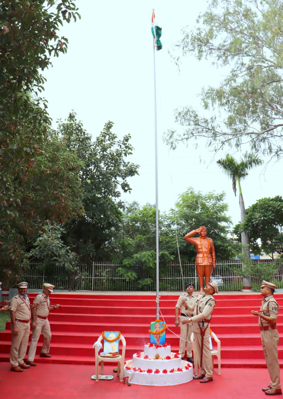 कबीरधाम जिले के पुलिस अधीक्षक धर्मेंद्र सिंह द्वारा पुलिस अधीक्षक कार्यालय कबीरधाम में आज 15.08.2025 को 79वाॅ स्वतंत्रता दिवस के अवसर पर प्रातः 08:00 बजे ध्वजारोहण किया गया। ध्वजारोहण के दौरान अतिरिक्त पुलिस अधीक्षक श्री पुष्पेंद्र बघेल, उप. पुलिस अधीक्षक श्री संजय ध्रुव, उप. पुलिस अधीक्षक श्री प्रतीक चतुर्वेदी, उप. पुलिस अधीक्षक श्री कृष्ण कुमार चंद्राकर, उप. पुलिस अधीक्षक श्री आशीष शुक्ला एवं कार्यालयीन अधिकारी / कर्मचारी उपस्थित रहे। तिरंगा फहराते समय प्लाटून द्वारा सलामी दी गई तथा ध्वजारोहण पश्चात् राष्ट्रगान गाया गया। पुलिस अधीक्षक द्वारा जिले के समस्त पुलिस अधिकारी / कर्मचारियों तथा जिले वासियों को स्वतंत्रता दिवस के अवसर पर शुभकामनाए देकर उपस्थित शहीद परिवार से कुमारी संगीता मरावी जी एवं श्री जितेंद्र नेवले जी को पुष्पगुच्छ, श्रीफल, साल आदि भेंट कर सम्मानित कर, उत्कृष्ट कार्य करने वाले पुलिस के अधिकारी/जवान जिसमें- निरीक्षक (अ) वीरेन्द्र सिंह तारन, उप निरीक्षक (अ) युवराज आसटकर, उप निरीक्षक सालिकराम साहू, प्र.आर. 281 प्रवीण मिश्रा, आरक्षक 827 राजकुमार वार्ते, आरक्षक 551 उत्तम चंद्रवंशी, आरक्षक 526 राजेश शिवोपाशक, आरक्षक 751 टेकराम दीवान, आरक्षक 754 कृष्णा धुर्वे, आरक्षक मुकेश चौरिया, आरक्षक 546 दीपक देवांगन, आरक्षक 475 महेश ध्रुव, प्र.आर. 84 मिलाप सिंह,
