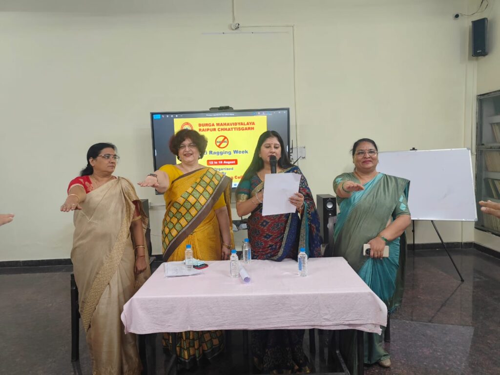 रायपुर, 19 अगस्त। दुर्गा महाविद्यालय द्वारा आयोजित एंटी रैगिंग वीक का समापन आज महाविद्यालय के सभा कक्ष में भव्य समारोह के साथ किया गया। इस अवसर पर छत्तीसगढ़ बाल अधिकार संरक्षण आयोग की अध्यक्षा डॉ. वर्णिका शर्मा मुख्य अतिथि के रूप में उपस्थित रहीं।