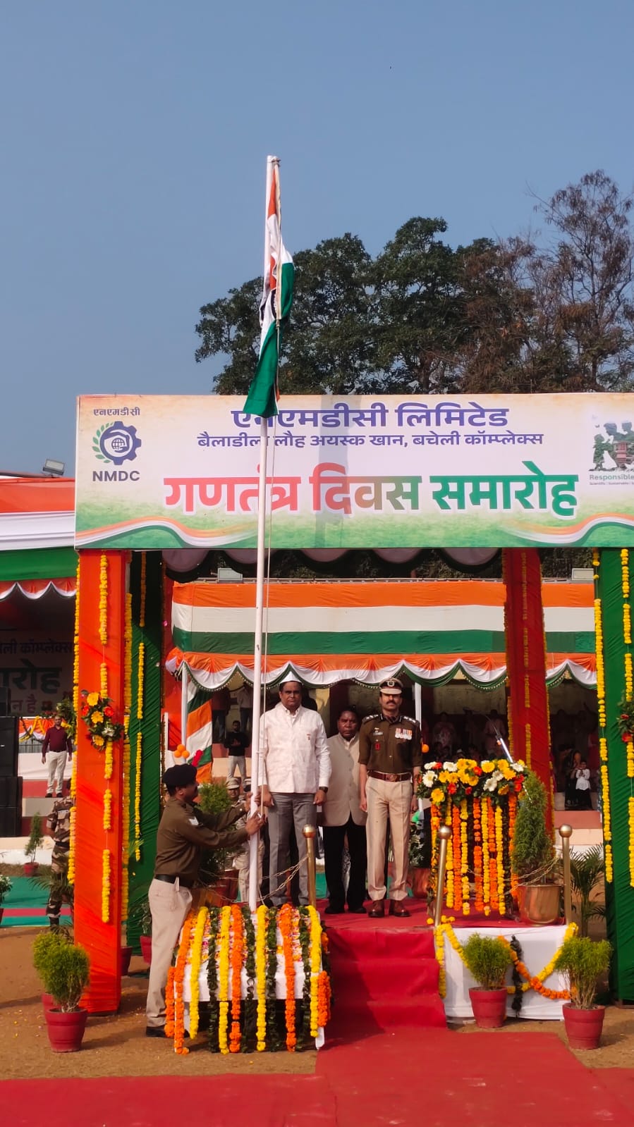 मुख्य अतिथि परियोजना प्रमुख श्रीधर कोडाली, मुख्य महाप्रबंधक ने अपने संबोधन में सभी को गणतंत्र दिवस की बधाई देते हुए एनएमडीसी बचेली की उपलब्धियों को रेखांकित किया। उन्होंने कहा कि भारत की विकास यात्रा में पर्यावरण हितैषी खनिक के रूप में एनएमडीसी का योगदान महत्वपूर्ण है। उन्होंने आगे कहा कि भविष्य में भी एनएमडीसी अपने उत्पादन और सीएसआर प्रकल्पों के माध्यम से भारत की विकास यात्रा में अपना महत्वपूर्ण योगदान देती रहेगी।