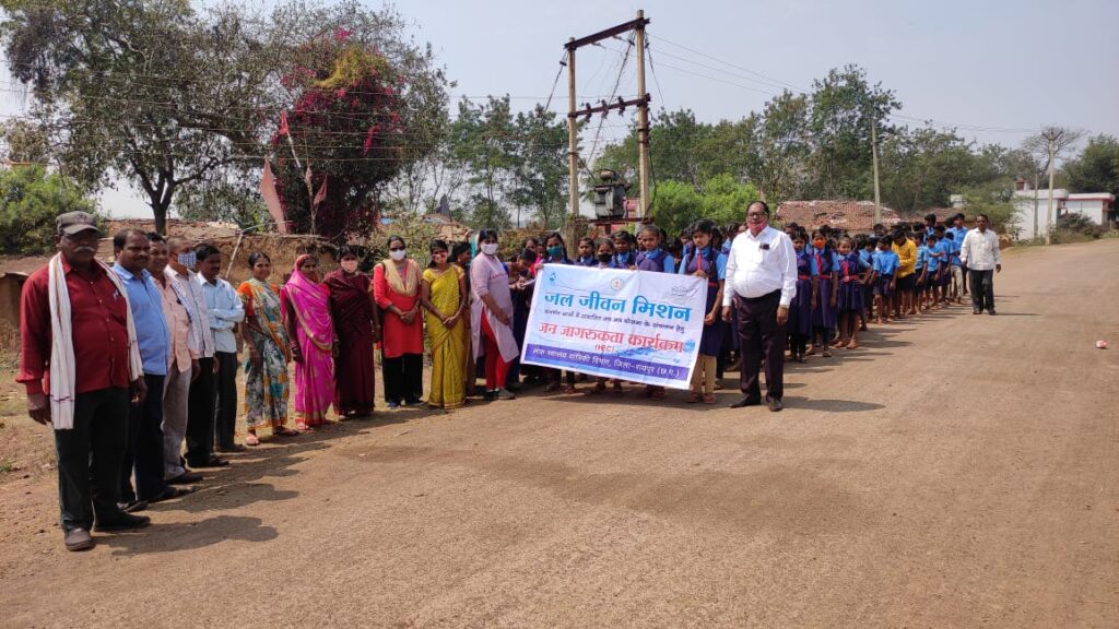रायपुर 28 फरवरी 2022/लोक स्वास्थ्य यांत्रिकी विभाग द्वारा जल जीवन मिशन के अंतर्गत आज आरंग विकासखंड के ग्राम कोटनी में जन जागरूकता व सुरक्षा के लिए जागरूकता रैली का आयोजन किया गया।