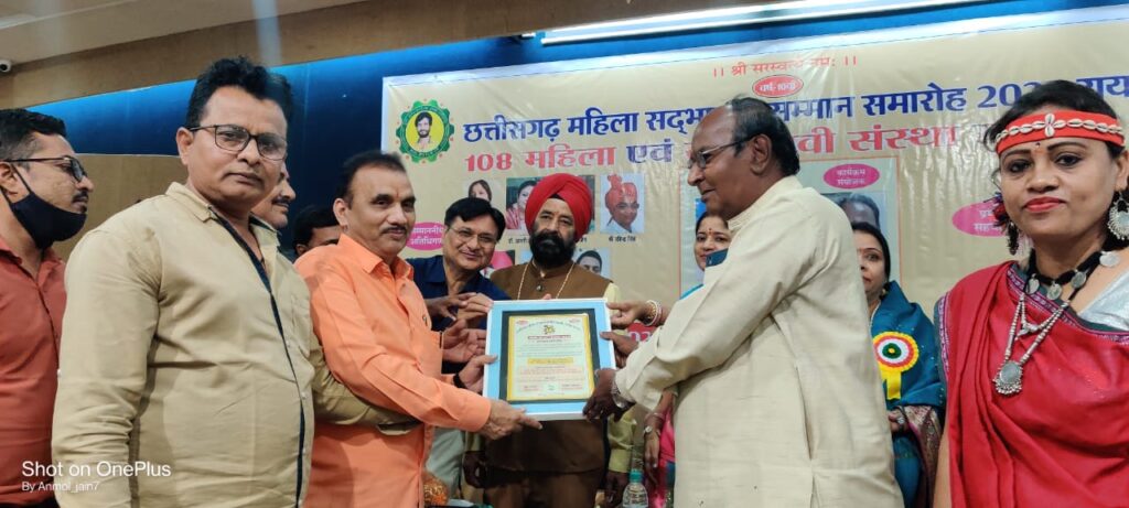 रायपुर । महिला दिवस के अवसर पर मंगलवार आज 08 मार्च 2022 वृंदावन हॉल, रायपुर में आयोजित छत्तीसगढ़ महिला सद्भावना महिला एवं सेवाभावी संस्था सम्मान समारोह 2022 में सामाजिक कार्यकर्ता एवं बुद्धिजीवी, लक्ष्मीनारायण लाहोटी एवं उपस्थित मुख्य अतिथीयों द्वारा समाजसेवक, मोहम्मद सज्जाद खान द्वारा संस्था अवाम ए हिन्द सोशल वेलफेयर कमेटी के माध्यम से 26 वर्षों से मानव जीवन को सुरक्षित रखने, जनहित एवं समाज कल्याण की दिशा में निरतंर किये जा रहे कार्यों के लिए सम्मानित किया गया।