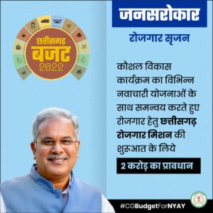 8 छत्तीसगढ़ रोजगार मिशन की शुरूआत के लिये 2 करोड़ का प्रावधान।