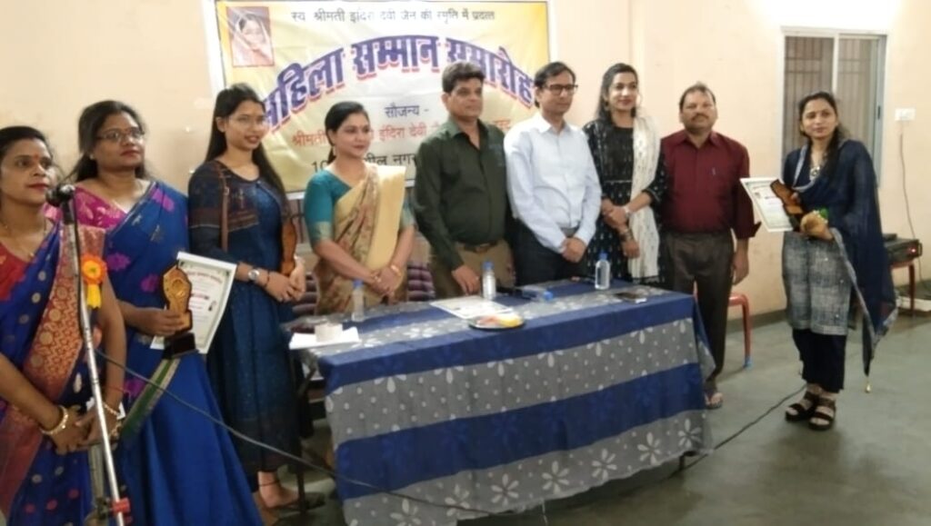 रायपुर। अंतरराष्ट्रीय महिला दिवस के पावन अवसर पर समाज के विभिन्न क्षेत्रों में उल्लेखनीय योगदान देने वाली महिलाओं का सम्मान किया गया। जिन महिलाओं का सम्मान किया गया उनमे प्रमुख रूप से चिकित्सा के क्षेत्र में डॉ इरीना पाल, डॉ कृतिका गोयनका समाज सेवा में जुही सोनी रोहिणी अरमो संस्कृति एवं कला के क्षेत्र एवं छतीसगढ़ी एलबम गायिका कंचन जोशी समाज सेवी डिम्पल मिश्रा का सम्मान किया गयाा।इस अवसर पर मुख्य अतिथि के रूप में छतीसगढ़ी फिल्मों की सुप्रसिद्ध अभीनेत्री प्रीति डूमरेे, राज बैद ट्रस्टी कमलेश जैन समाज सेवी सुदीप जैन पत्रकार पृथा शुक्ला समाज सेवी पीयूष जैन , सीमा वर्मा, हेमलता यादव, सीमा बागड़े, सुरजा बाई, नागेश पुष्पाा, साय ज्योति गजरलेवाार, शांति सिन्हाा, कांति भट्टट, लक्षमणि साय, तुलसी श्रीवास, आरती गोस्वामी, झरना देवांगन, कविता प्रीतिआदि विशेष रूप से उपस्थित थे। इस अवसर पर महिलाओं के लिये बिंदी लगाओ मेहंदी एवं कुर्सी दौड़ प्रतियोगिता का आयोजन भी किया गया जिसमें सभी महिलाओं ने उत्साह पूर्वक भाग लिया।