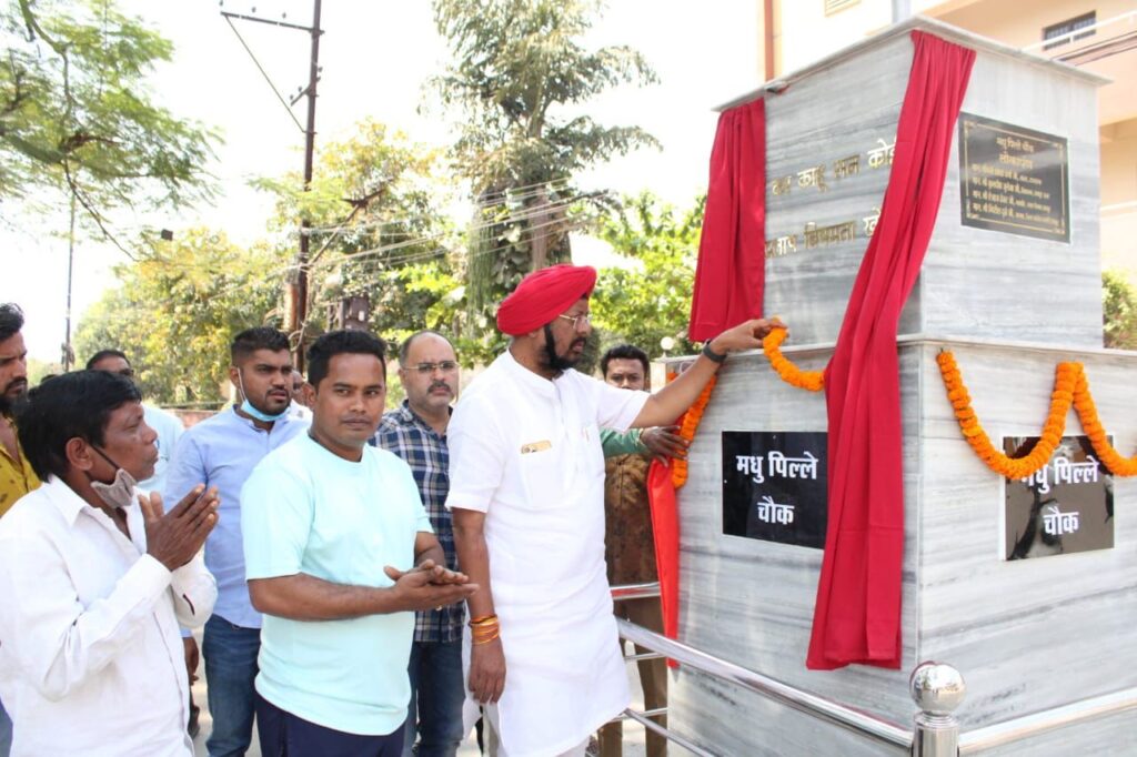 रायपुर। सोमवार को शांतिनगर सेक्टर 34 में क्षेत्रवासियों की आवश्यकता एवं सौन्दर्यीकरण को देखते हुए रायपुर उत्तर विधायक कुलदीप जुनेजा ने मधुपिल्ले चौक का लोकार्पण किया। विगत वर्षों से क्षेत्रवासियों में लगातार चौक के निर्माण व सौन्दर्यीकरण की मांग को देखते हुए विधायक कुलदीप जुनेजा ने चौक का लोकार्पण किया जिससे क्षेत्रवासियों में हर्ष है, इस अवसर पर बड़ी संख्या में क्षेत्रवासी व वार्ड के पार्षद कामरान अंसारी उपस्थित थे।विधायक कुलदीप जुनेजा ने इस अवसर पर कहा कि छत्तीसगढ़ में कांग्रेस सरकार आने के बाद से विगत पंद्रह वर्षों में भाजपा की सरकार ने जो कार्य नहीं किया वह हो रहा है. क्षेत्रवासियों की जरुरत व आवश्यकताओं को पूरा करना हमारा प्रथम कर्तव्य है. इसी के मद्देनजर जन आकाँक्षाओं को देखते हुए और क्षेत्रवासियों की मांग पर आज मधुपिल्लै चौक का निर्माण व सौन्दर्यीकरण का कार्य किया गया. वार्ड के पार्षद द्वारा भी लगातार क्षेत्रवासियों की आवश्यकताओं और जरूरतों को लेकर मुझे अवगत कराया जा रहा है और हमारा पूरा प्रयास है की जनता की हर जरुरत को पूरा करने का हम प्रयास कर रहें हैं।लोकार्पण अवसर पर राम मंदिर समिति के अध्यक्ष संजय सिंह, किरण पिल्ले, अरुण तिवारी , संजय चोपड़ा, प्रशांत नशीनें, हैप्पी तुली , मधुसूदन शर्मा , दिलीप भट्ट, शब्बीर खान, शेख नदीम, शमीम बैग एवं वार्ड के गणमान्य नागरिक उपस्थित थे।