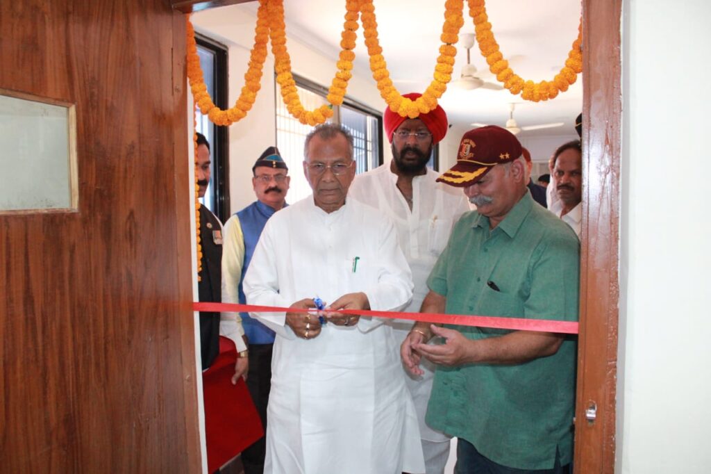 रायपुर/२०२२/ गृहमंत्री ताम्रध्वज साहू ने आज संचालनालय सैनिक कल्याण, छत्तीसगढ़ एवं जिला सैनिक कल्याण कार्यालय रायपुर में भित्तिचित्र एवं सभागार का अनावरण किया। इस अवसर पर श्री साहू ने भूतपूर्व सैनिकों व इस क्षेत्र में निरंतर अपनी सेवा व सहयोग दे रहे पूर्व सैनिकों और उनके परिवारजनों को शॉल श्रीफल भेंट कर सम्मानित किया एवं पुरस्कार स्वरूप आर्थिक राशि भी प्रदान की। इस कार्यक्रम में बोर्ड के संचालक, भूतपूर्व सैनिकगण एवं उनके परिवारजन एवं सेवारत सैनिकों की गरिमामयी उपस्थिति रही।