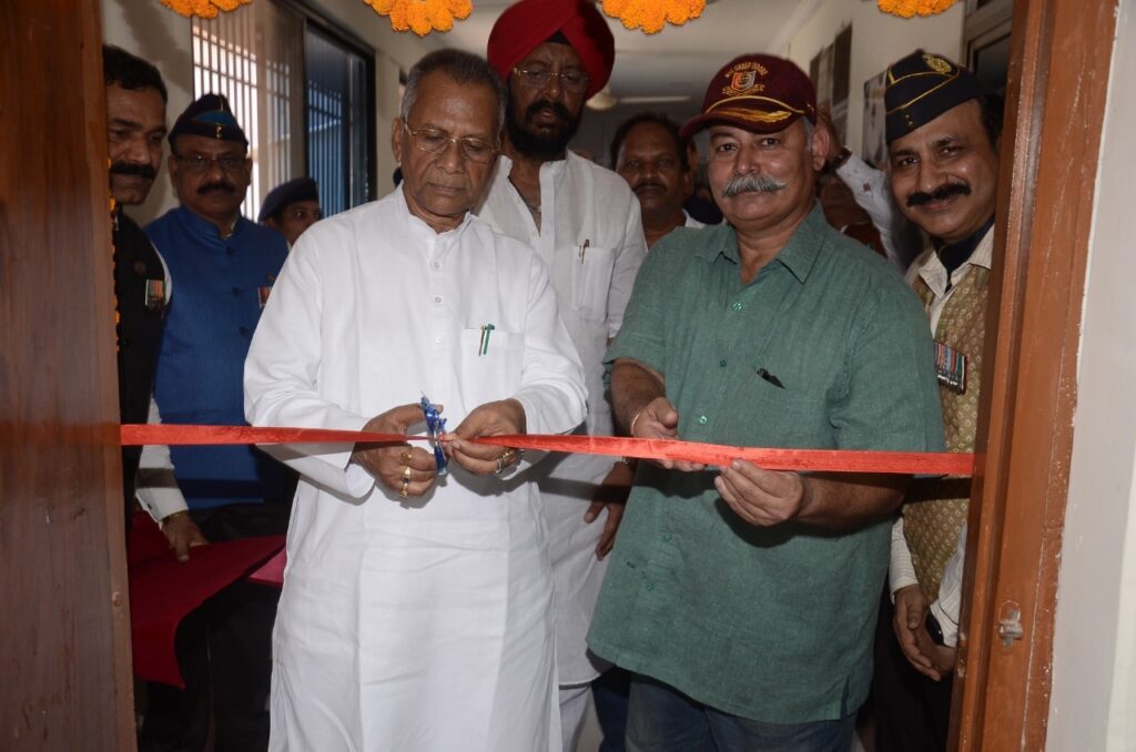 रायपुर, 04 अप्रैल 2022/ राज्य के गृहमंत्री ताम्रध्वज साहू ने आज एक विशेष समारोह में संचालनालय सैनिक कल्याण, छत्तीसगढ़ रायपुर की चारदीवारी पर नवनिर्मित भित्तिचित्र का लोकार्पण किया। ये भित्तिचित्र भारतीय सशस्त्र सेना की विभिन्न क्रियाकलापों को दर्शाते हैं। सैनिक कल्याण परिसर की चारदीवारी पर नवनिर्मित ये भित्तिचित्र भारतीय सेनाओं द्वारा किए गए ऐतिहासिक कार्यों एवं सेना की सामर्थ्य को दर्शाते हैंl सेना के शौर्य को भित्तिचित्र के माध्यम से प्रदर्शित करने से यह राज्य के युवाओं के लिए प्रेरणास्रोत का काम करेंगी जिससे युवाओं का ध्यान सेना की तरफ आकर्षित होगा और वो भारतीय सेना में शामिल होने के लिए प्रेरित होंगे। गृहमंत्री श्री साहू ने इस मौके पर सैनिक कल्याण बोर्ड के नवनिर्मित सभागार एवं उन्नयन वेबसाइट का विमोचन भी किया। कार्यक्रम में गृहमंत्री श्री ताम्रध्वज साहू द्वारा शहीद लेफ्टिनेंट राजीव पांडे (वीर चक्र) की वीरमाता को शॉल एवं श्रीफल से सम्मानित किया गया एवं भूतपूर्व सैनिक हितग्राहियों को धनादेश प्रदान किया गया l