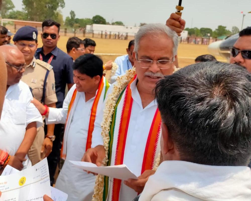 रायपुर, 04 मई 2022/मुख्यमंत्री भूपेश बघेल आज विधानसभा क्षेत्रों में आम जनता, जनप्रतिनिधियों और समाज प्रमुखों से ‘भेंट-मुलाकात‘ अभियान की शुरूआत सरगुजा संभाग के बलरामपुर जिले के सामरी विधानसभा क्षेत्र से की। इस विधानसभा क्षेत्र के कुसमी पहुंचने पर हेलीपेड पर संसदीय सचिव श्री चिंतामणी महाराज सहित वहां के जनप्रतिनिधियों और नागरिकों ने मक्के से बनने वाले पॉपकॉर्न की माला पहनाकर उनका गर्म जोशी से स्वागत किया।