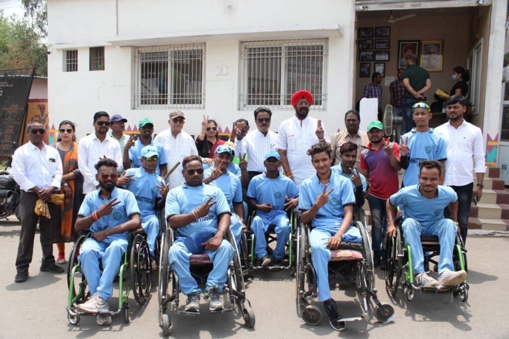 रायपुर देवेंद्र नगर कार्यलय में छत्तीसगढ़ व्हीलचेयर क्रिकेट एसोसिएशन के अध्यक्ष श्री अचिन बेनर्जी के नेतृत्व में व्हीलचेयर क्रिकेट खिलाड़ीयो ने विधायक कुलदीप जुनेजा से भेट किया श्री विधायक जी ने हाथ मिलाकर खिलाड़ियों का हौसला अफजाई किया और विगत 2 वर्ष के पश्चात व्हीलचेयर क्रिकेट इंडिया के द्वारा पहला नेशनल व्हीलचेयर T10 चैंपियनशिप का आयोजन किया जा रहा है । इस सीरीज को चंडीगढ़ दिल्ली बेंगलुरु और अहमदाबाद में आयोजित किया जा रहा है।इस आयोजन के लिए विधायक ने मंगलकामना भेट किया। और आगामी जीत की बधाई दी। इस सीरीज में भाग लेने वाले सभी 12 राज्य की टीमों को चार ग्रुपों में बांटा गया है ग्रुप A.में पंजाब हरियाणा उत्तर प्रदेश ग्रुप B.में दिल्ली छत्तीसगढ़ मध्य प्रदेश ग्रुप C. में कर्नाटका तमिलनाडु आंध्र प्रदेश ग्रुप D. में गुजरात महाराष्ट्र उत्तराखंड टीम में शामिल है। छत्तीसगढ़ का मैच 10 और 11 मई को दिल्ली में खेला जाएगा इसके लिए छत्तीसगढ़ की व्हीलचेयर क्रिकेट टीम 8 मई को दिल्ली के लिए रवाना होगी इस सीरीज में हर ग्रुप से दो विजेता टीमें क्वार्टर फाइनल में प्रवेश करेगी जो आगामी 27 मई को ग्वालियर में आयोजित किया जाएगा इसमें आठ सिलेक्ट टीम खेलेगी इस सीरीज का नाम स्वर्गीय माधवराव सिंधिया स्मृति में आयोजित किया जा रहा है। छत्तीसगढ़ व्हीलचेयर क्रिकेट टीम लिस्ट 1 सुनील राव 2 पोषण ध्रुव 3 उत्तरा ध्रुव 4 किशन रावत 5 सुमित पैकरा 6 मुकेश कुमार 7 सुरेंद्र साहू 8 अमर सिंह 9 सुरेंद्र लोहार 10 सूरज कुमार 11 उमेश
