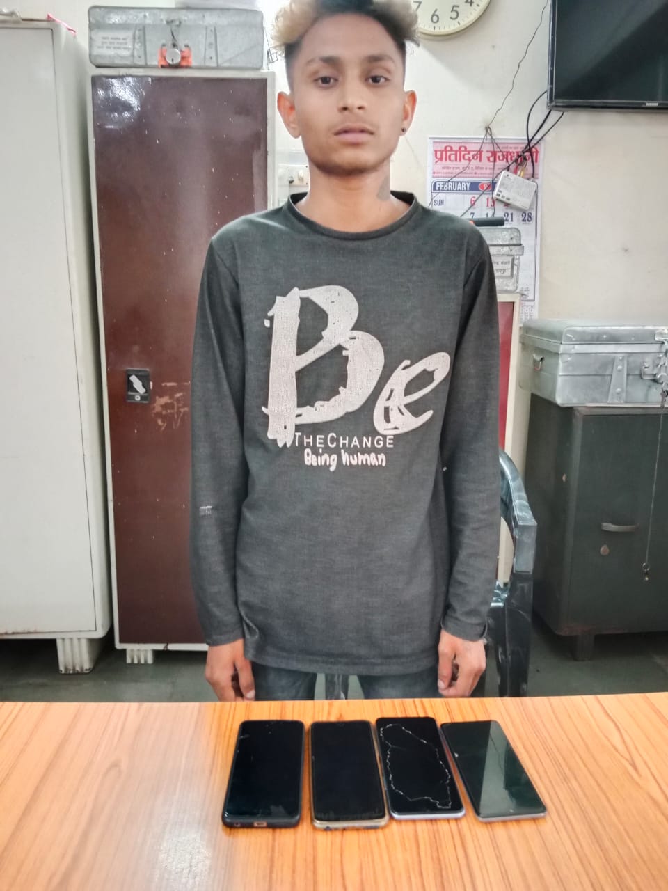 उक्त घटना को वरिष्ठ पुलिस अधीक्षक प्रशांत अग्रवाल द्वारा गंभीरता से लेते हुए दिशा निर्देश दिया गया जिस पर अतिरिक्त पुलिस अधीक्षक शहर तारकेश्वर पटेल, अतिरिक्त पुलिस अधीक्षक अपराध श्री अभिषेक माहेश्वरी, नगर पुलिस अधीक्षक कोतवाली श्री अविनाश ठाकुर, प्रभारी एण्टी क्राईम एवं सायबर यूनिट श्री गिरीश तिवारी तथा थाना प्रभारी गोलबाजार श्री सुदर्शन सिंह ध्रुव को अज्ञात आरोपी की पतासाजी कर गिरफ्तार करने हेतु निर्देशित किया गया। जिस पर वरिष्ठ अधिकारियों के निर्देशन में एण्टी क्राईम एवं सायबर यूनिट तथा थाना गोलबाजार की संयुक्त टीम द्वारा अज्ञात आरोपी की पतासाजी करना प्रारंभ किया गया। टीम के सदस्यों द्वारा प्रार्थिया से घटना के संबंध में विस्तृत पूछताछ करते हुए आरोपियों के हुलिये व उनके द्वारा उपयोग किये जाने वाले वाहन के संबंध में विस्तृत पूछताछ किया गया। साथ ही आसपास के लोगों से भी घटना के संबंध में विस्तृत पूछताछ किया गया। ए.सी.सी.यू की टीम के सदस्यों द्वारा घटना स्थल व उसके आसपास लगे सी.सी.टी.व्ही. कैमरों के फुटेजों को खंगालने के साथ ही तकनीकी विश्लेषण किया गया। इसी दौरान टीम को मुखबिर सेे सूचना प्राप्त हुई कि शिवनगर हाण्डी पारा थाना आजाद चौक रायपुर का उदय खड़से पिता स्व. अशोक खड़से उम्र 19 साल शास्त्री मार्केट रायपुर में मोटर सायकल से चोरी का मोबाईल फोन बिक्री करने ग्राहक की तलाश में घूम रहा है। सूचना पर उक्त स्थान पर जाकर देखने पर आरोपी को घेराबंदी कर पकड़ा गया पाया गया। जिस पर टीम के सदस्यों द्वारा आरोपी से पूछताछ करने पर अपना नाम उदय खड़से बताया एवं उसके कब्जे से 04 नग मोबाईल प्राप्त हुआ जिसका बिल या किसी प्रकार की अन्य कागजात प्रस्तुत करने कहने पर उसके द्वारा गोलमोल जवाब देकर टीम को लगातार गुमराह करने का प्रयास किया जा रहा था, जिस पर टीम द्वारा कड़ाई से पूछताछ करने पर आरोपी द्वारा दिनांक 02.05.2022 से 07.05.2022 के बीच रात्रि के समय समता कॉलोनी से 01 नग सैमसंग मोबाईल फोन, कोटा रोड मोहबा बाजार चौक से 02 लोगो से 02 नग वीवो मोबाईल फोन, स्टेशन रोड गुरूद्वारा के पास से 01 नग वीवो मोबाईल फोन एवं प्रार्थिया कुमारी प्रियंका जगत से वीवो वाय 21ए मोबाईल फोन चोरी करना स्वीकार किया गया। पूछताछ में आरोपी ने बातया कि वह अपने महंगे शौक एवं नशे की लत को पूरा करने के लिए घटना कारित करता था। आरोपी पूर्व में थाना आजाद चौक के चोरी के प्रकरण जेल निरूद्ध रह चुका है। आरोपी के कब्जे से घटना में प्रयुक्त मोटर सायकल स्प्लेण्डर सीजी 04 एन.एन. 7663 एवं 04 नग मोबाईल फोन कीमती लगभग 1,13,000/- रू को जप्त कर आरोपी को गिरफ्तार किया गया। आरोपी के विरूद्ध थाना गोलबाजार में अपराध क्रमांक 102/2022 धारा 356, 379 भादवि. एवं अपराध क्रमांक 01/2022 धारा 41(1$4)/379 भा