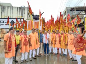 *अंबिकापुर* मां बनभौरी मंदिर समिति अंबिकापुर द्वारा मां बनभौरी प्राण प्रतिष्ठा कार्यक्रम के तहत आज कला केंद्र मैदान से घड़ी चौक संगम चौक महामाया चौक जय स्तंभ चौक अग्रसेन चौक अग्रसेन भवन से होते हुए कुंडला में नवनिर्मित मंदिर प्रांगण तक विशाल शोभायात्रा निकाली गई इससे पूर्व समिति द्वारा मां की पवित्र ज्योति यात्रा कलश यात्रा के कार्यक्रम आयोजित किए जा चुके हैं शोभायात्रा में सनातन धर्म के सभी अंग उपांगों की अनेक विशेष झांकिया देखने को मिली मंदिर निर्माण समिति के अध्यक्ष विनोद अग्रवाल हनुमान राइस मिल ने बताया कि शोभा यात्रा का आयोजन कुंडला में मां बनभौरी मंदिर निर्माण की खुशी व श्रद्धा को सार्वजनिक रूप से दर्ज करने उस प्रसन्नता को आम जनता के साथ साझा करने व उसके प्रयोजन की सार्वजनिक स्वीकार्यता प्राप्त करने की दृष्टि से किया गया और यही इसका उद्देश्य भी है उन्होंने कहा कि शोभा यात्रा प्राण प्रतिष्ठा के निर्धारित कर्मकांडो का अनिवार्य हिस्सा है ! विशाल शोभायात्रा में माता के केसरिया निशान हाथ में लिए ढोल बैंड शैला नगाड़ों की धुन में पितांबर परिधान में सुसज्जित हजारों युवा पुरुष माता बहने मां बनभौरी की श्रद्धा में पूरे मार्ग में नाचते गाते नजर आए शोभा यात्रा के मुख्य आकर्षण यात्रा के दौरान निकाली गई झांकियां रही जिसमें एक पुरुष व महिला को पौराणिक परिधानों से सुसज्जित कर शिव पार्वती का जीवंत स्वरूप दिया गया था जिसमें नंदी भगवान भी साथ दिखे साथ ही कृष्ण राधा व हनुमान जी की जीवंत झांकी भी नगर में आकर्षण का केंद्र बनी हुई थी वही एक रथ पर सवार नौ कुंआरी कन्याओं के रूप में नवदुर्गा की झांकी निकाली गई मां बनभौरी के संघर्ष की गाथा को अभिव्यक्त करती एक झांकी में मां बनभौरी का दरबार बनाकर उसमें माता को भौरे का रूप दिया गया विदित हो कि पौराणिक कथाओं के अनुसार जब आतताई राक्षसों से पूरा समाज परेशान था तब मां बनभौरी ने भंवरा का रूप ग्रहण कर वरुण नामक दैत्य का संहार किया थ
