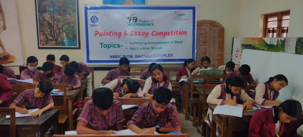 आज़ादी के अमृत महोत्सव के अंतर्गत मनाए जा रहे आइकोनिक सप्ताह के दौरान निबंध व पेंटिंग प्रतियोगिता का आयोजन एनएमडीसी, बचेली विद्यालय में किया गया।