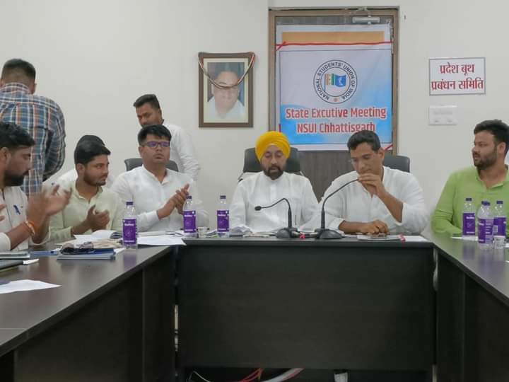 रायपुर । । NSUI की प्रदेश कार्यकारिणी की बैठक दिनांक 09/07/2022 से 10/07/2022 तक चली जिसमे प्रदेश प्रभारी राष्ट्रीय महासचिव विशाल चौधरी एवं प्रदेश अध्यक्ष नीरज पांडे द्वारा पूरे प्रदेश के पदाधिकारियों की बैठक ली गई जिसमें विभिन्न विषयों पर विस्तार से चर्चा एवं विषयों का समाधान निकाला गया इसमें प्रदेश के सभी पदाधिकारी एवं जिला अध्यक्ष ने अपनी विभिन्न विषयों पर बात रखें।