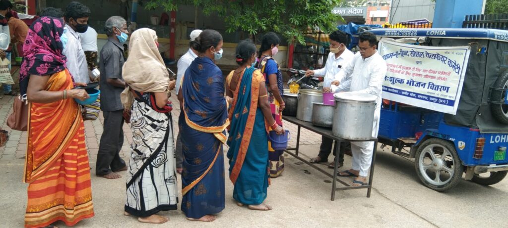 रायपुर । राजधानी की सर्वधर्म जनहित एवं सामाजिक संस्था, अवाम ए हिन्द सोशल वेलफेयर कमेटी, रायपुर द्वारा संस्थापक, मो. सज्जाद खान के नेतृत्व में नियमित रूप संचालित सुपोषण अभियान के तहत निःशुल्क भोजन वितरण कार्य के *845वें दिन* स्थानीय रायपुर रेल्वे स्टेशन परिसर एवं अन्य स्थानों में एकाकी जीवन व्यतीत करने वाले अनाथ, बेसहारों, लाचार व्यक्तियों तथा शासकीय अस्पतालों, डीकेएस अस्पताल में दूर दराज से इलाज के लिए आये मरीजों के परिजनों को गर्म भोजन मुहैया कराया गया।