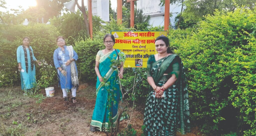 राष्ट्रीय अखिल भारतीय सम्मेलन महिला सरगुजा इकाई ने पृथ्वी पर हरियाली का सिंगार हो वृक्षों की संख्या अधिक हो 11 जुलाई से लगातार प्रारंभ वृक्षारोपण कार्य पर्यावरण की रक्षा का उपदेश लेकर प्रति वर्ष की भांति इस वर्ष भी रामनिवास टॉकीज के पास संकट मोचन हनुमान मंदिर के प्रांगण में 5 वर्ष पूर्व तैयार फूलदार पौधे गुलहड़, हिबक्स, चमेली जूही ,सदाबहार मधुमालती एवं केला आंवला के पौधे का रोपण किया पंडित के पुजारी ने फूलदा एवं पूजन योग पौधे की मांग की थी जिसके रोपण से भक्तगण को फूल आसानी से मिल सके कॉलोनी में निवास सचिव अलका गर्ग ने उसके संवर्धन एवं देखभाल की जिम्मेदारी ली एवं प्रदेश उपाध्यक्ष प्रेमलता गोयल के नेतृत्व में यह कार्य संपन्न हुआ एवं वहां पर उपस्थित भक्तजन को भी पौधे का सहयोग किया गया जिला अध्यक्ष पीयूष अग्रवाल जिला कोषाध्यक्ष कविता अग्रवाल की सहभागिता रही।