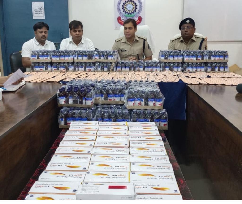 *इसी तारतम्य में दिनांक 29.07.22 को जरियें मुखबीर सूचना मिली कि एन0एच0 53 कोमाखान चौखडी के पास एक व्यक्ति खड़ा है पांच-सात कार्टून रखा है, कुछ नशीली दवा रखा है, संदिग्ध लग रहा है एवं कही जाने हेतु वाहन का इंतजार कर रहा है। उक्त सूचना को पुलिस अधीक्षक भोजराम पटेल द्वारा गंभीरता से लेते हुये सूचना की तस्दीक कर कार्यवाही करने हेतु शीघ्र सायबर सेल टीम एवं थाना प्रभारी कोमाखान को टीम तैयार कर कार्यवाही करने हेतु निर्देशित किया गया। जिसपर सायबर सेल टीम एवं थाना कोमाखान पुलिस टीम द्वारा योजना तैयार कर घटनास्थल कोमाखान चौखड़ी पहुचकर घेराबंदी किये जो उक्त संदिग्ध व्यक्ति पुलिस पेट्रोलिंग वाहन एवं पुलिस टीम को देखकर भागने का प्रयास करने लगा। जिसे टीम द्वारा घेराबंदी कर दौड़ाकर पकडा गया, पकड़कर पूछताछ करने पर अपना नाम शेखर मेहेर पिता अनंत राम मेहेर उम्र 33 वर्ष सा0 गम्भारीगुड़ा थाना सिनापाली जिला नुआपाड़ा (ओड़िसा) निवासी होना बताया व न्यू रामेश मेडिकल स्टोर्स हाथीबांधा जिला भवानीपट्टनम उडिसा में स्वयं का दुकान होना बताया। उनके पास रखे कार्टूनों के संबंध में पूछताछ करने पर टाल-मटोल कर गोलमोल जवाब देने लगा तथा अपने को मेडिकल एजेंसी में काम करना बताया एवं मेडिकल दूकान होना कहकर गुमराह करने का प्रयास किया। जिससें संदेह होने पर संदेही के पास मिले कार्टूनों को खोलकर चेक किया तो 05 नग खाकी कार्टून में ESkuf Codeine Phosphate & Chiorpheniamine mateate syrup एवं 02 नग कार्टून में Alprazolam Tablets IP prazo- 0.5 mg भरे मिलें। जिसमें संबंध में पूछताछ कर वैधानिक दस्तावेज प्रस्तुत करने कहा गया जो अपने पास कोई भी वैधानिक दस्तावेज नही होना बताया तथा उक्त नशीली दवाईओं को ओड़िसा से छत्तीसगढ़ में बिक्री करने हेतु लाना बताया। संदेही शेखर मेहेर के पास उपरोक्त नशीली दवाईओं का कोई भी वैधानिक दस्तावेज नही होने पर आरोपी के कब्जे से (1) 05 पेटी ESkuf Codeine Phosphate & Chiorpheniamine mateate syrup प्रत्येक पेटी पर 160-160 नग प्रत्येक शीशी 100-100 एम0एल0 का कुल 800 नग कीमती करीबन 1,40,000 रूपये, (2) 02 खाकी रंग कार्टून में Alprazolam Tablets IP prazo- 0.5 mg कुल 41270 नग कीमती करीबन 2,23,810 रूपयें जुमला कीमती करीबन 3,63,810 रूपयें को जप्त किया गया। जिसकी कालाबाजार में कीमत तकरीबन 20 लाख रूपये से भी अधिक है आरोपी को मौके पर से गिरफ्तार कर उनके विरूद्ध थाना कोमाखान में अपराध क्रमांक 100/22 धारा 21 नारकोटिक्स एक्ट के तहत् कार्यवाही किया गया। आरोपी से प्रतिबंधित नशीली टेबलेट एवं सिरप कहां से लाया गया है। इस संबंध में विस्तृत पूछताछ की जा रही है। आरोपी भारी मात्रा छत्तीसगढ व उडिसा में नशीली दवाईयों का व्यापार करता है। आरोपी के पास मिले सबुत के आधार पर अब तक वह 50 लाख रूपये से भी अधिक के नशीली दवाईयों का व्यापार कर चुका है। जिस संबंध में आगे की कार्यवाही की जावेगी। ज