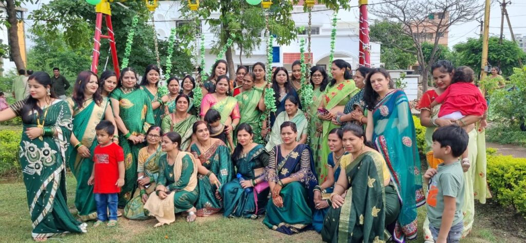 रायपुर । गैलेक्सी कॉलोनी में महिलाओं के द्वारा सावन महोत्सव का आयोजन कर पारंपरिक वेशभूषा में महिलाओं ने सावन गीत प्रस्तुत कर पर्व मनाया।