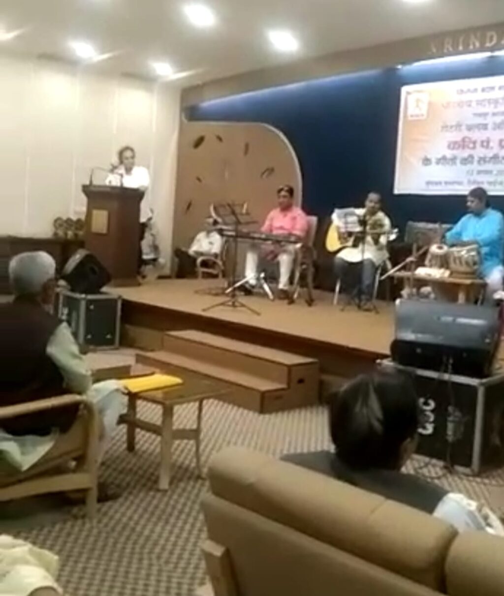 *रायपुर।* 12 अगस्त को भारतीय सांस्कृतिक निधि के तत्वावधान में वृंदावन सभागार, रायपुर में कवि पं. प्रदीप के देशभक्तिपूर्ण एवं जीवन दर्शन पर आधारित गीतों की संगीतमय प्रस्तुति की गई। इस कार्यक्रम में अंचल के लोकप्रिय गायक डॉ. चितरंजन कर, हुकुम शर्मा, बजरंग, ललित, योगेश, मनोज, तूलिका ने भाग लिया। संस्था के प्रदेशाध्यक्ष श्री अरविंद मिश्र ने बताया कि कवि पं. प्रदीप देश के लिये धरोहर है, उन्होंने देशभक्तिपूर्ण गीतों को लिखा और देश के लिये जिया है, इसलिये अमृत महोत्सव के अवसर पर उनकी स्मृति सार्थक है।