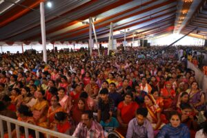 इस प्रकार कर्मों की प्रधानता के ऊपर से प्रकाश डालते हुए बताया साथ ही वहां बैठे हजारों भक्तों को अपनी मधुर आवाज में संगीत के साथ मधुर भजनों का आनंद प्राप्त कराया ।जिससे वहां बैठे लोग मस्ती और आनंद में होकर झूमने लगे । दिव्य आरती एवं प्रसाद वितरण के साथ में कथा का विश्राम हुआ । बंसल परिवार पावड़ा साहू वाले समस्त भक्त जनों के साथ उपस्थित रहे ।