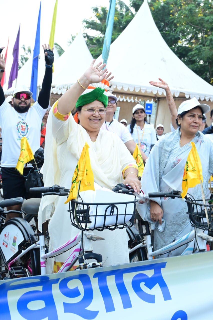 रायपुर, 06 सितम्बर 2022/ महिला एवं बाल विकास विभाग मंत्री श्रीमती अनिला भेंड़िया की अगुआई में पोषण जागरुकता के लिए सही पोषण देश रोशन और गढ़बो सुपोषित छत्तीसगढ़ के संदेश के साथ आज सुबह राजधानी रायपुर में मरीन ड्राइव से साइकिल रैली निकाली गई । रैली में राज्य महिला आयोग की अध्यक्ष श्रीमती किरणमयी नायक, विधायक धरसीवां श्रीमती अनिता योगेन्द्र शर्मा सहित बड़ी संख्या में यूनिसेफ, एन.एस.एस., रायडर्स ग्रुप के सदस्य शामिल हुए । इस अवसर पर श्रीमती भेंड़िया ने पोषण जागरुकता रथ को हरी झंडी दिखाकर रवाना किया और पोषण शपथ दिलाई। लगभग 5-6 किलोमीटर की परिधि में यात्रा कर साईकिल रैली पुनः मरीन ड्राईव में समाप्त हुई। पोषण माह अंतर्गत आयोजित इस साइकिल रैली का आयोजन महिला बाल विकास द्वारा यूनिसेफ के सहयोग से किया गया था।
