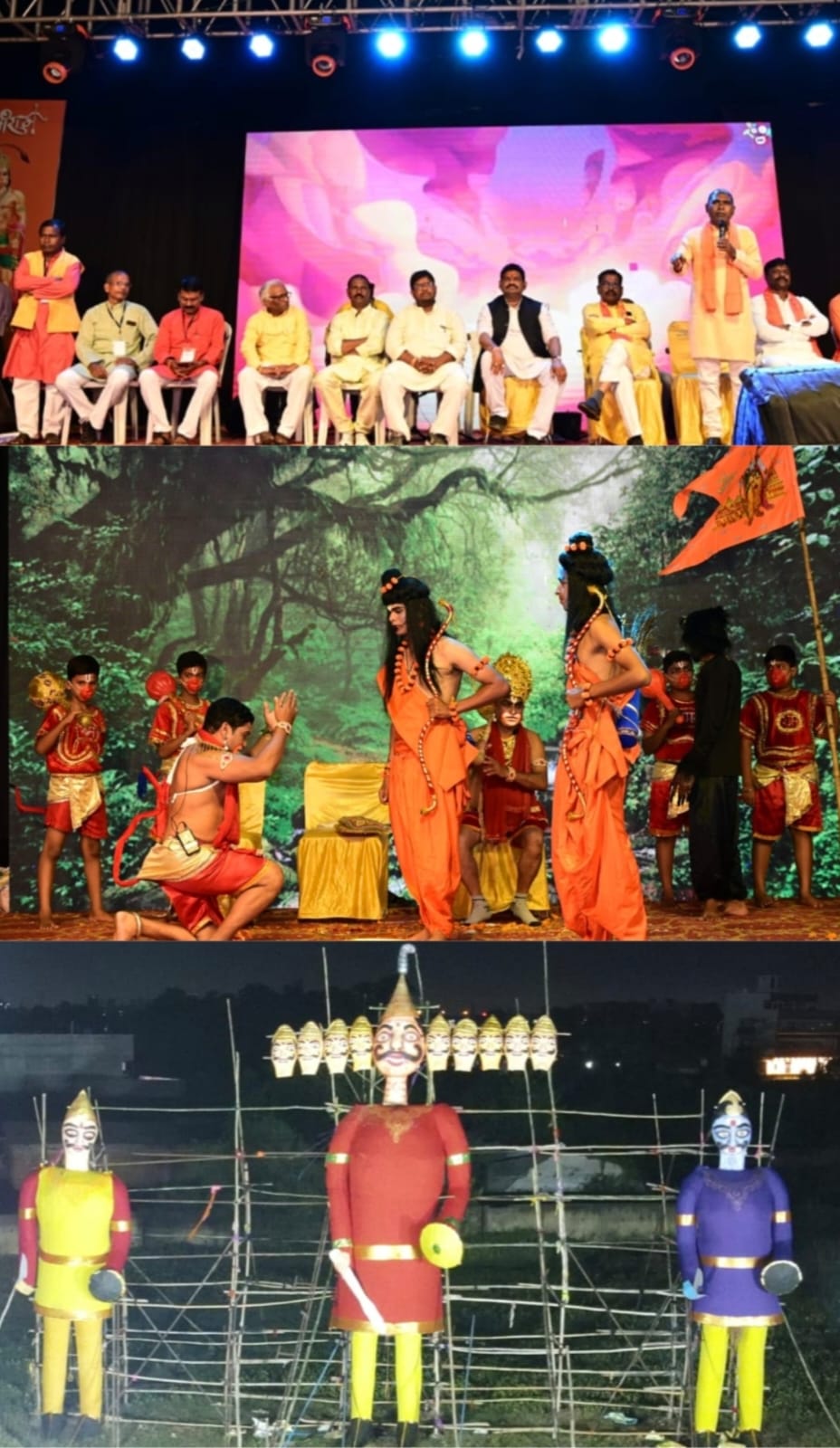 रायपुर : रायपुर के बोरियाखुर्द खेल मैदान में प्रथम वर्ष दशहरा उत्सव का आयोजन किया गया है जिसमें लगभग 10000 लोगों की उपस्थिति रहे। दशहरा के दिन बच्चों के लिए पतंग उत्सव के साथ शुभारंभ किया । उसके पश्चात शाम 4:00 बजे से छत्तीसगढ़ी नृत्य और गायन का आयोजन महिला मंडल दलों एवं बच्चों के द्वारा किया गया। तत्पश्चात रामलीला का संगीतमय मंचन किया गया, भव्य आतिशबाजी और रावण, कुंभकरण, मेघनाथ का दहन किया गया ।रात्रि कालीन कार्यक्रम में श्री प्रवीण दुकालू यादव जी के टीम के द्वारा जस गीत का गायन और नृत्य का आयोजन किया गया।