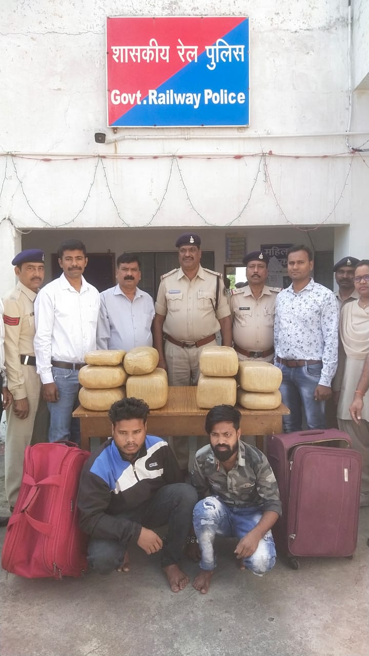 शासकीय रेल पुलिस, थाना रायपुर द्वारा श्रीमान पुलिस अघीक्षक (रेल) रायपुर धर्मेन्द्र सिंह (भा.पु.से.) के दिशा-निर्देशन में एवं उप पुलिस अधीक्षक रेल रायपुर एस.एन. अख्तर के नेतृत्व में गांजा तस्करों के विरूद्ध विशेष अभियान चलाया जा रहा है। इसी तारतम्य में समता एक्सप्रेस के एसी-2 टायर से आरोपी (1) शंकर मण्डल पिता राम मण्डल, उम्र 26 वर्ष, निवासी कुन्जमुड़ा थाना कोटापड़ जिला कोरापुट (उड़िसा) एवं (2) प्रशांत हरिजन पिता प्रमोद हरिजन, उम्र 22 वर्ष, निवासी कुन्जमुड़ा थाना कोटापड़ जिला कोरापुट (उड़िसा) नाम के 02 गांजा तस्कर से 38 कि.ग्रा. गांजा कीमती-3,80,000/- रूपये का जप्त कर आरोपियों को गिरफ्तार किया गया है जो उनके द्वारा ट्राली बैग में छुपाकर उत्तर प्रदेष ले-जाने के फिराक में थे। इसके पूर्व भी जी.आर.पी. द्वारा 02 प्रकरणों में क्रमषः 17 कि.ग्रा. एवं 13 कि.ग्रा. मादक पदार्थ गांजा पकड़ा गया है।