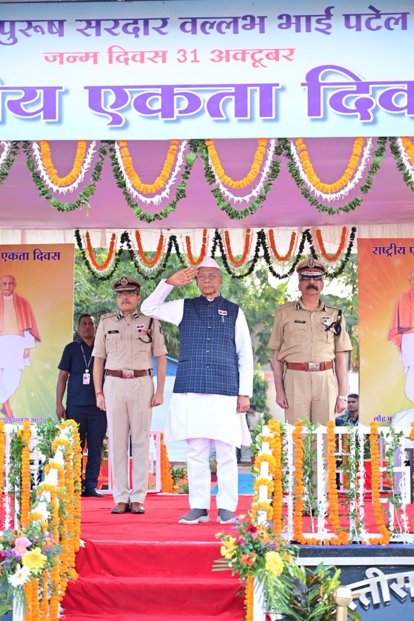 गृह मंत्री साहू ने राष्ट्रीय एकता दिवस पर पुलिस जवानों को सत्यनिष्ठा से राष्ट्र की एकता, अखण्डता और सुरक्षा बनाये रखने के लिए स्वयं को समर्पित करने की शपथ दिलाई। सशस्त्र बल के जवानों ने गृह मंत्री को सलामी दी। इस अवसर पर संसदीय सचिव विकास उपाध्याय, पुलिस महानिदेशक अशोक जुनेजा सहित बड़ी संख्या में विभागीय अधिकारी और पुलिस जवान उपस्थित थे।