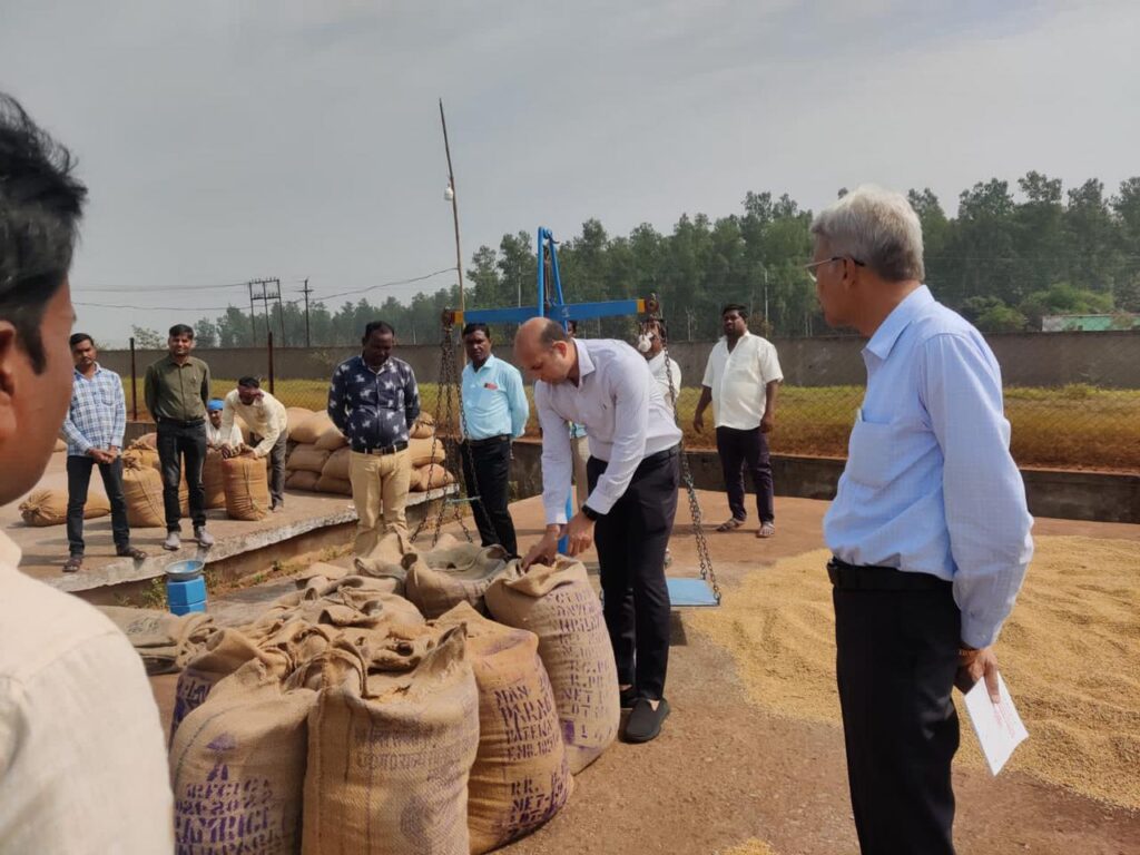 रायपुर 02 नवम्बर 2022/ प्रदेश के साथ ही रायपुर जिले के धान खरीदी केंद्रों में चालू खरीफ विपणन वर्ष में समर्थन मूल्य में धान खरीदी की शुरु हो गई है।कलेक्टर डॉ सर्वेश्वर भुरे ने आज पचेड़ा के धान खरीदी केंद्र का निरीक्षण किया और खरीदी व्यवस्था का जायजा लिया। उन्होंने खरीदी केंद्र में किए गए आवश्यक व्यवस्थाओं, धान खरीदी की दरों, पंजीकृत किसानों की संख्या, फड की व्यवस्था का जायजा लिया और धान खरीदी के लिए समितियों में की गई तैयारियों से संतुष्टि जताई।