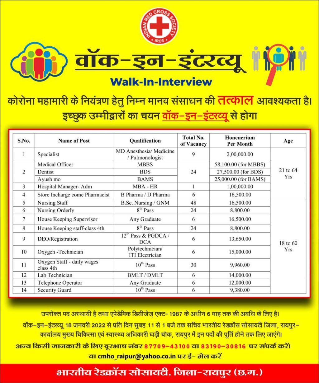 रायपुर । भारतीय रेडक्रास सोसायटी जिला रायपुर में 18जनवरी को सुबह 11 से एक बजे तक वॉक...